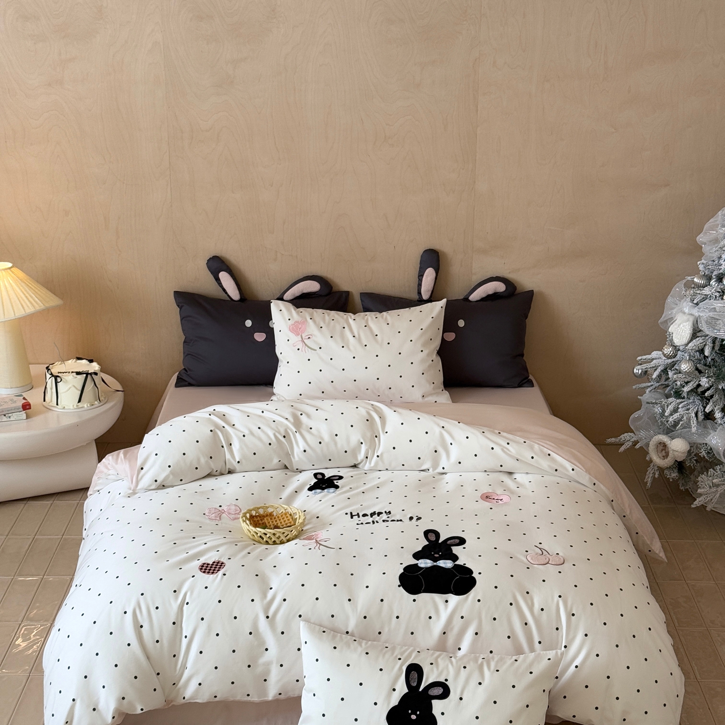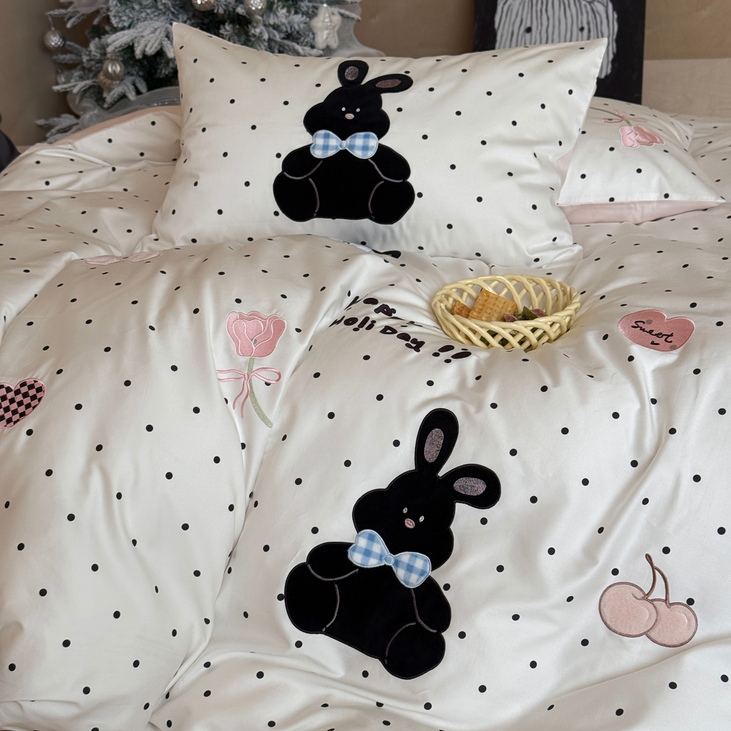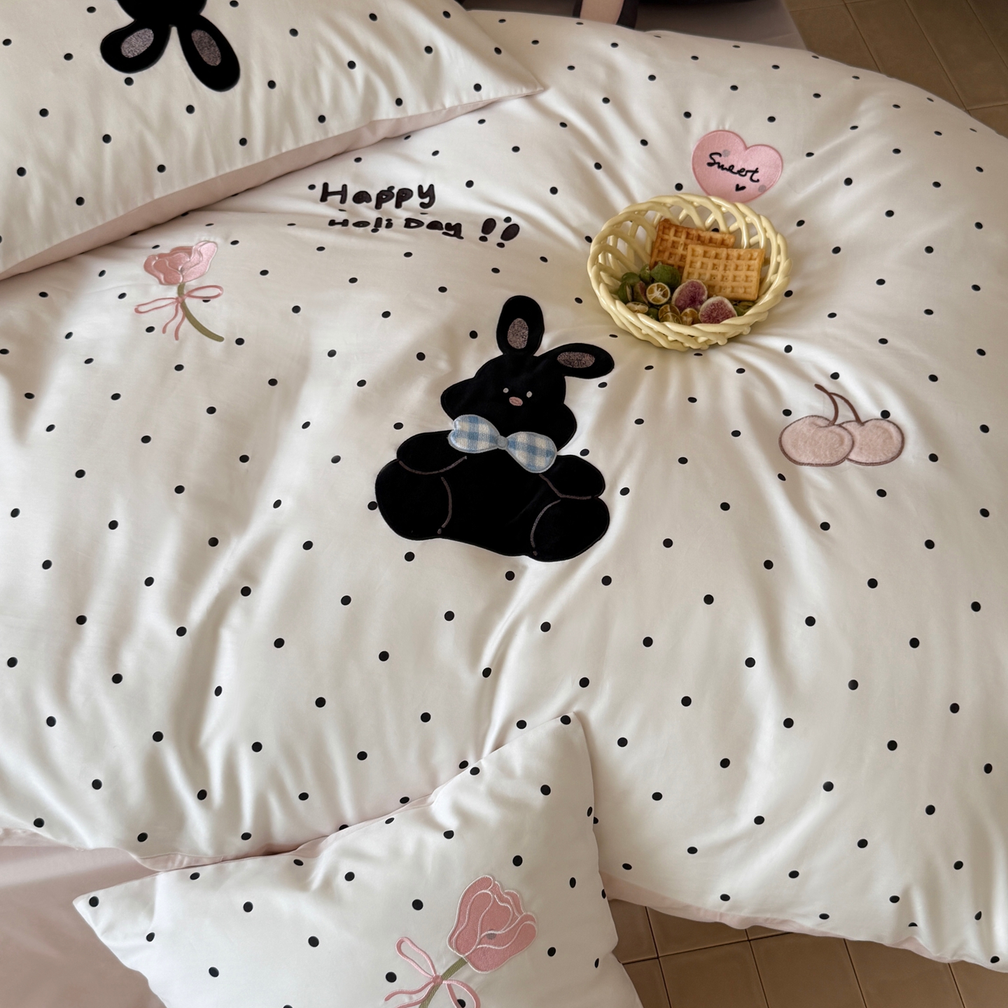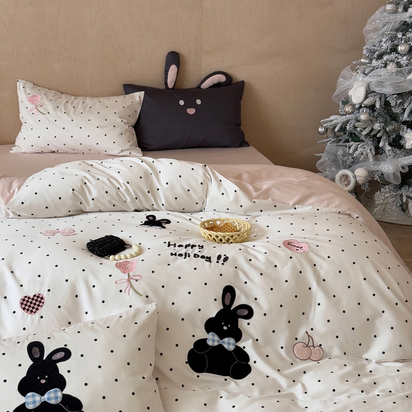 (总)嗨购家纺 2025新款萌系风格50S全棉贴布刺绣四件套-波点小兔