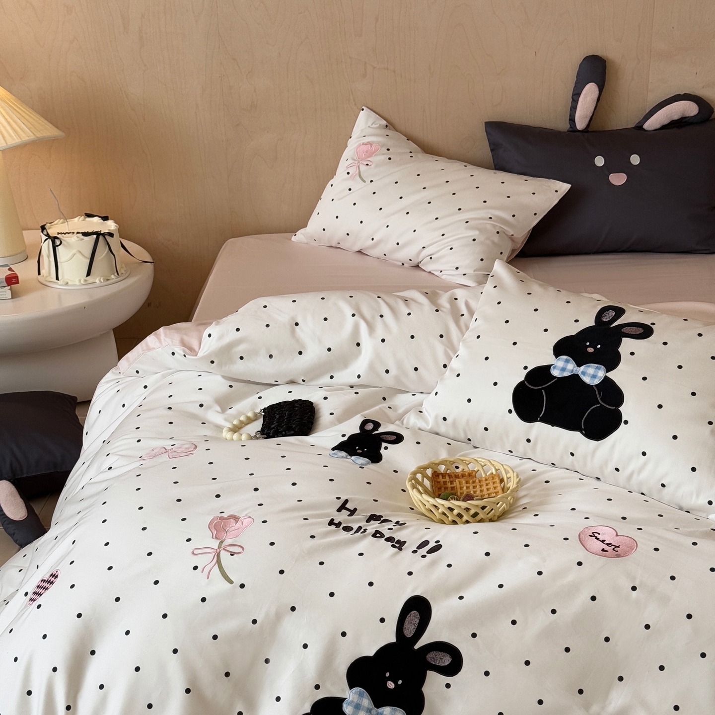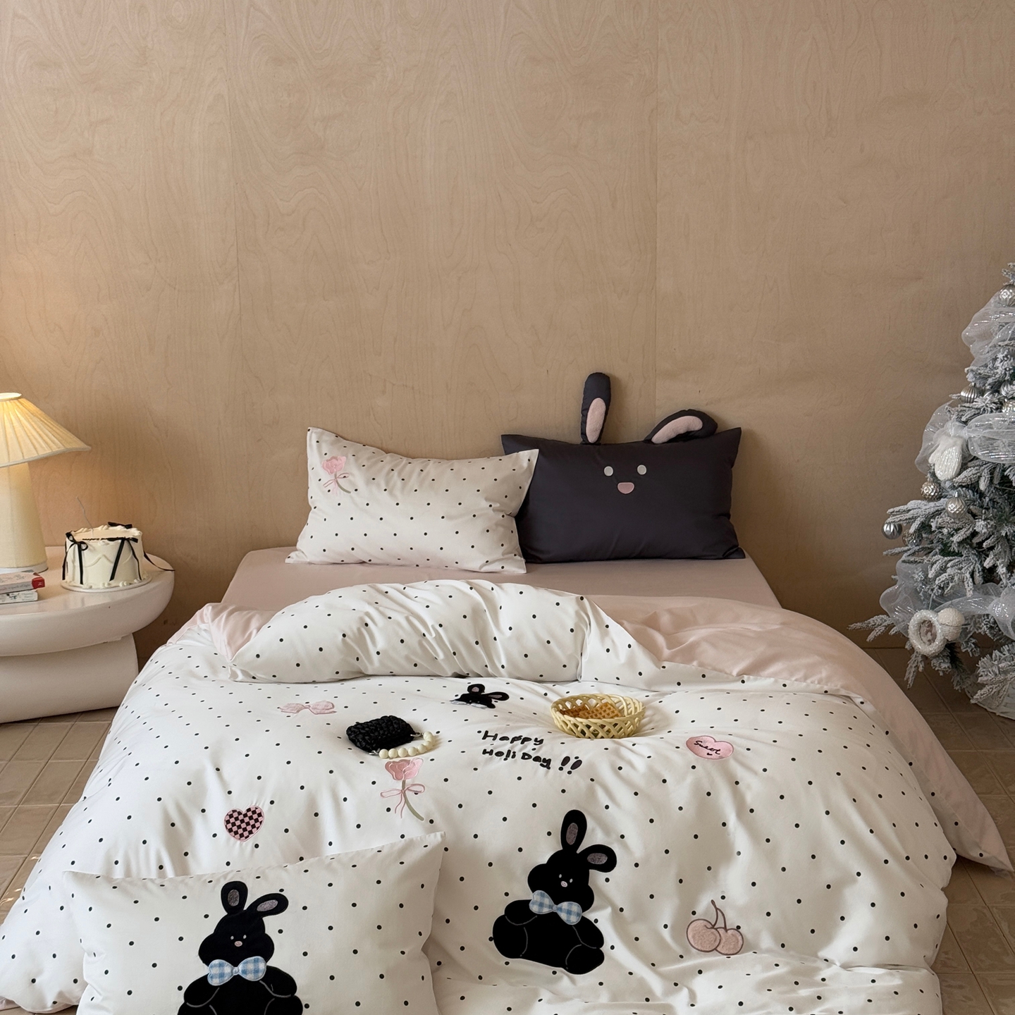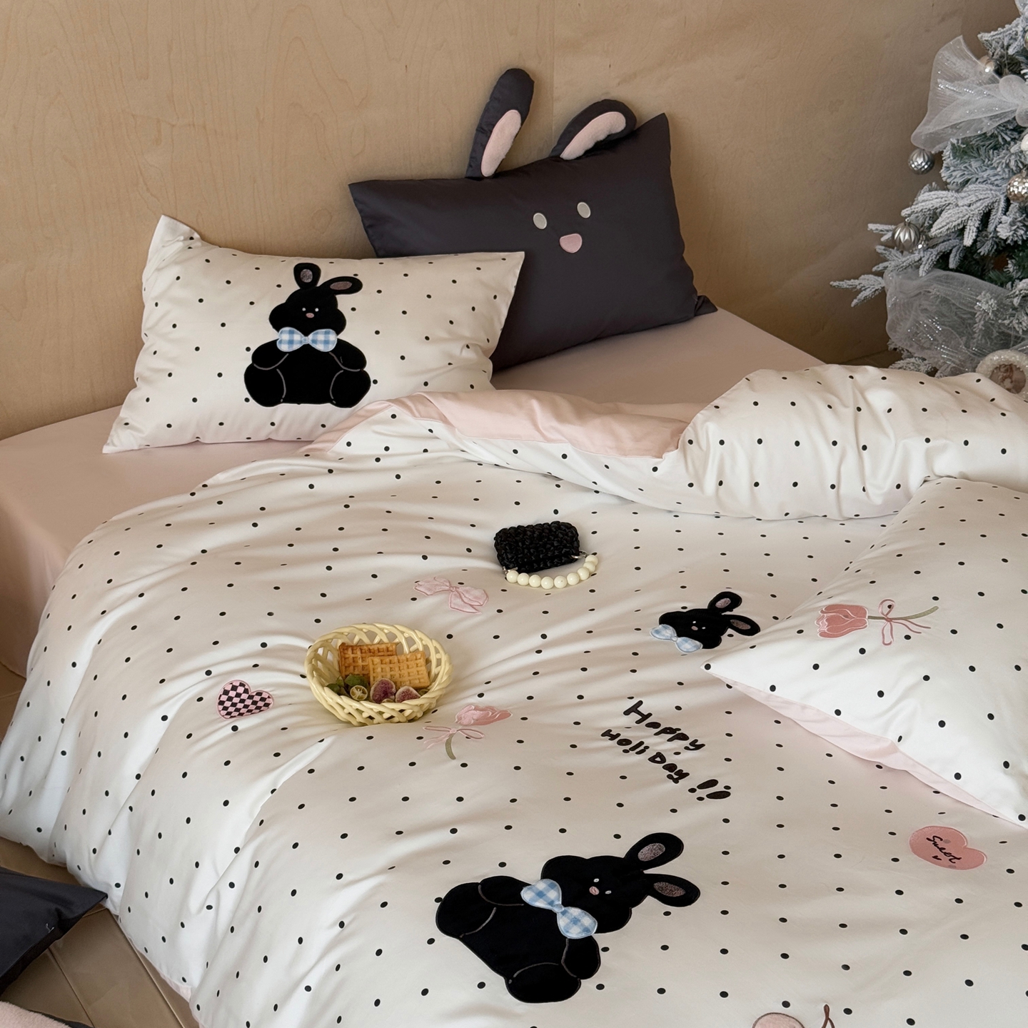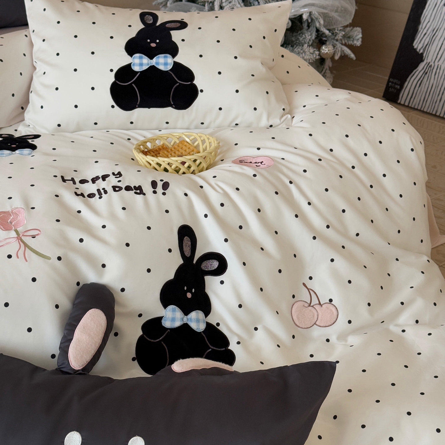 (总)嗨购家纺 2025新款萌系风格50S全棉贴布刺绣四件套-波点小兔