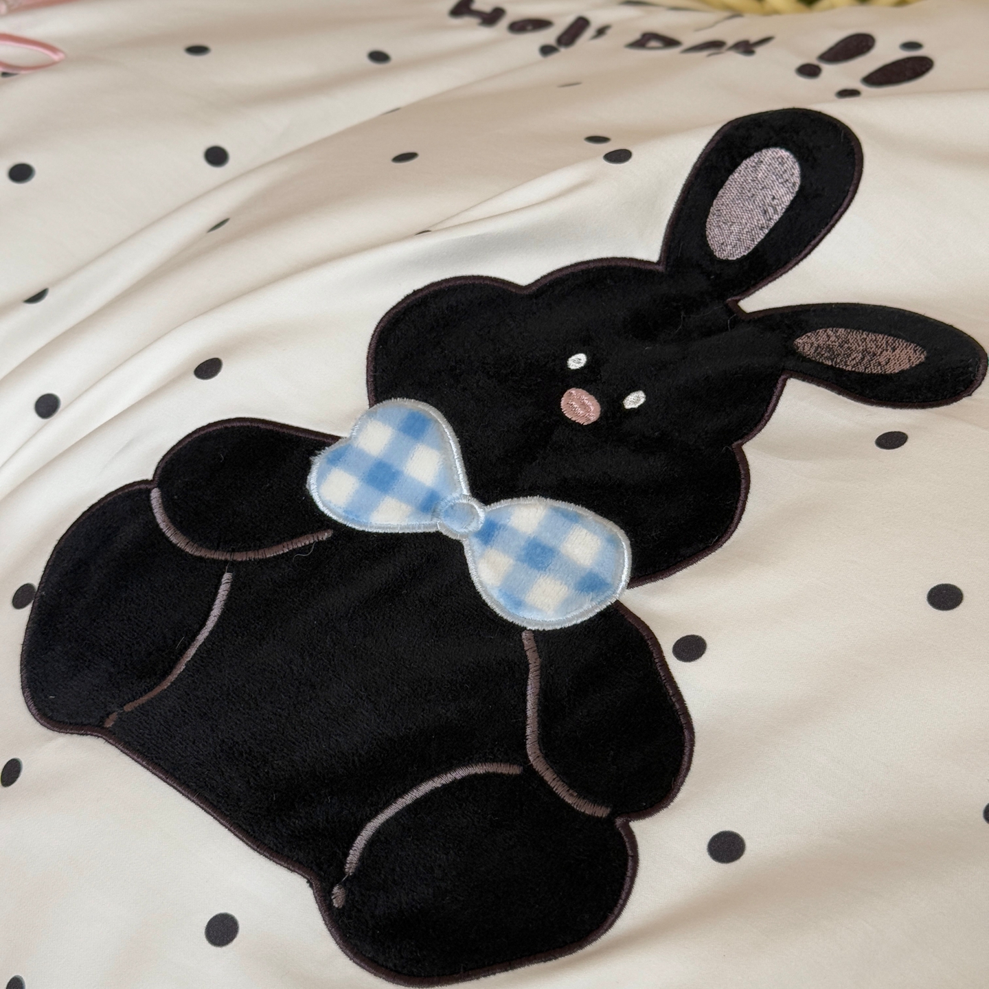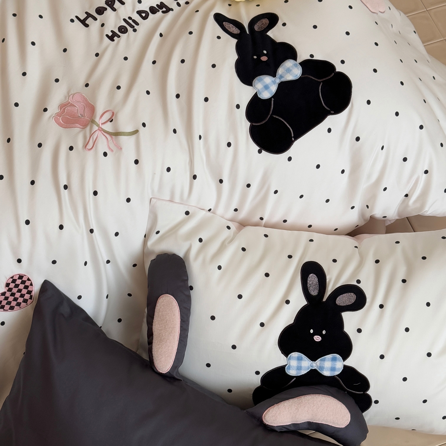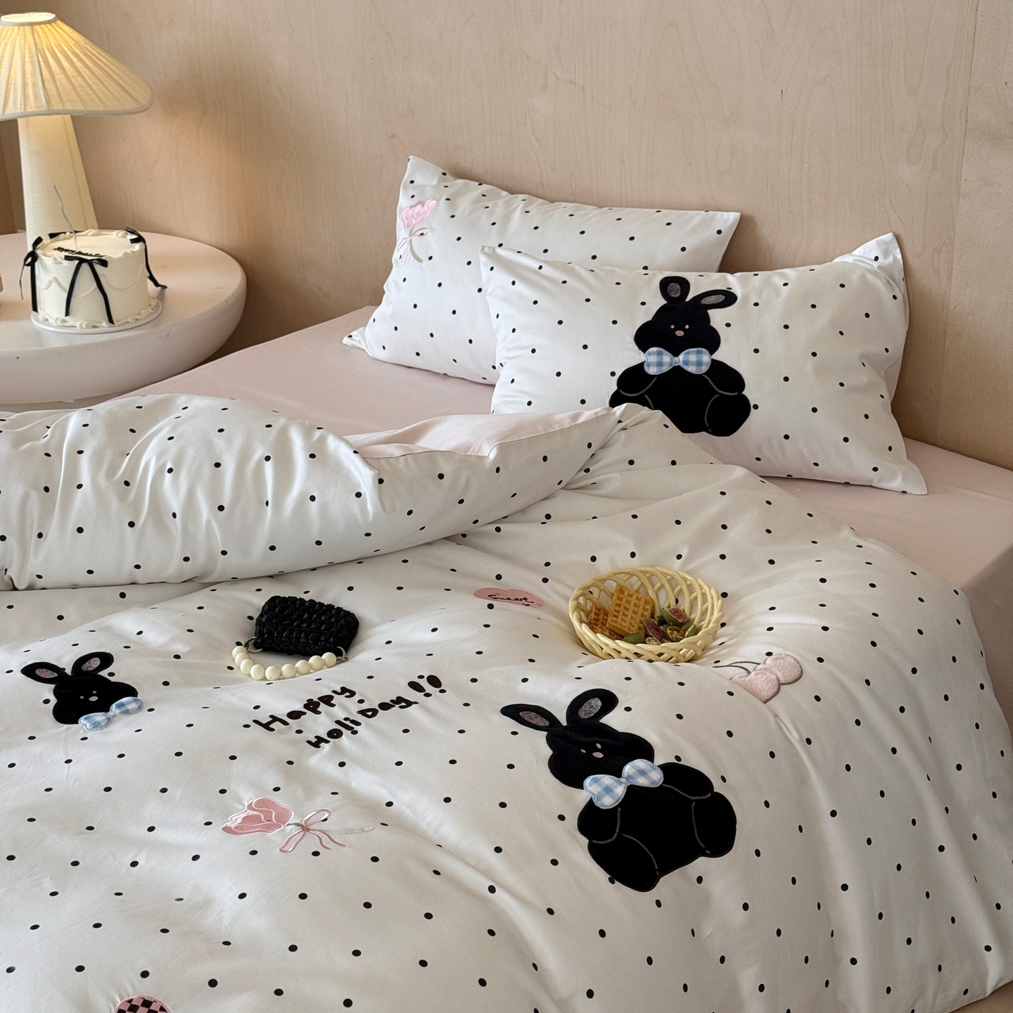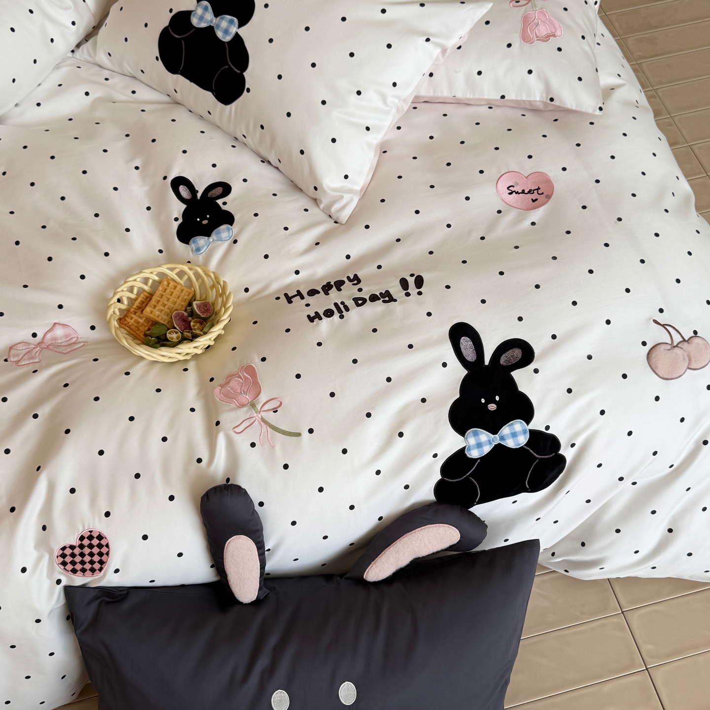 (总)嗨购家纺 2025新款萌系风格50S全棉贴布刺绣四件套-波点小兔