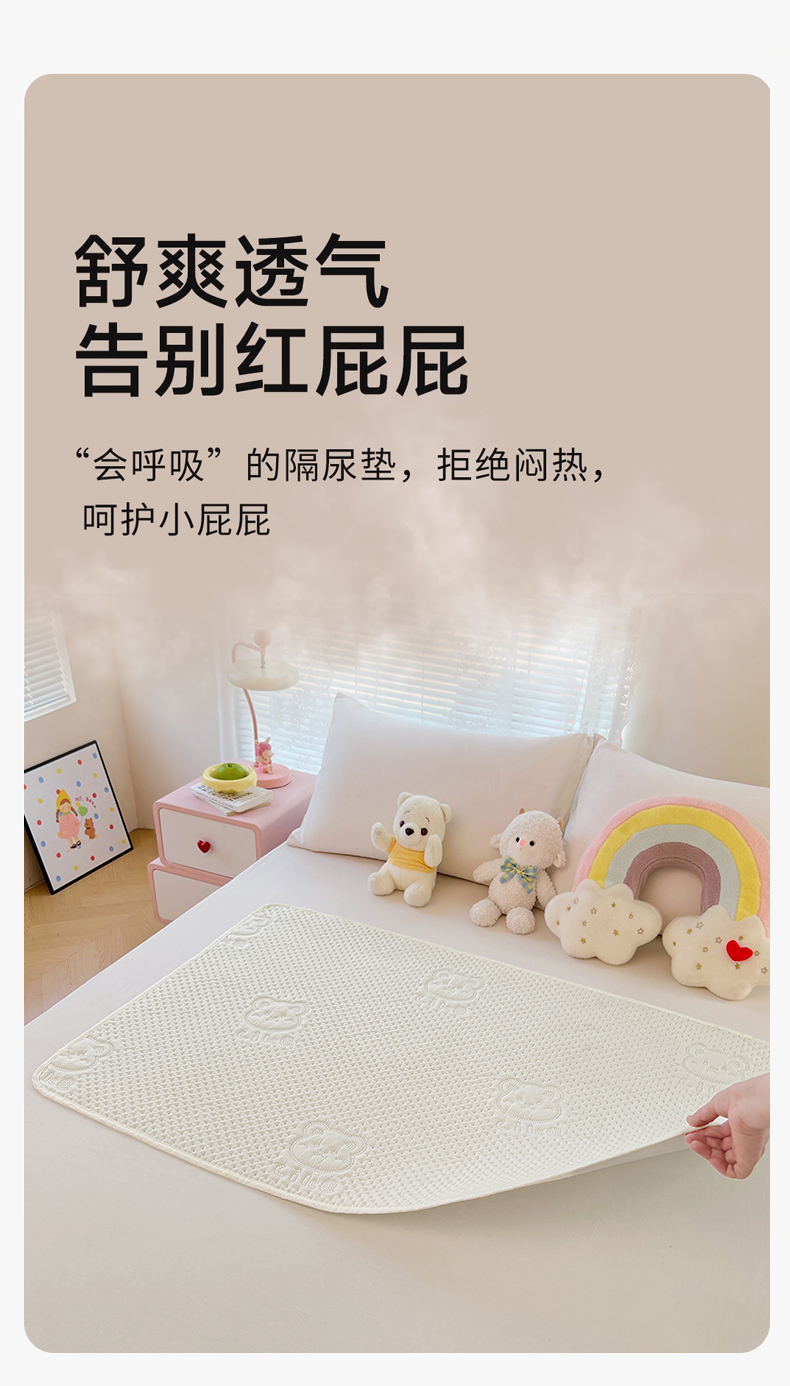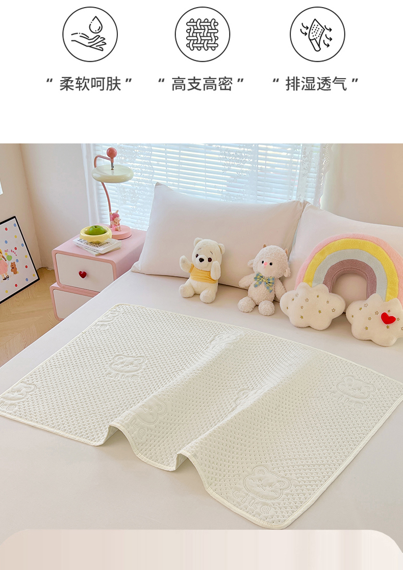 当前位置: 91家纺网 > 商品网购 > 床垫/床褥 > 普通床垫 > 三盛源 2025新款A类原棉夹棉防水隔尿床护垫 爱豆熊隔尿垫-奶昔白