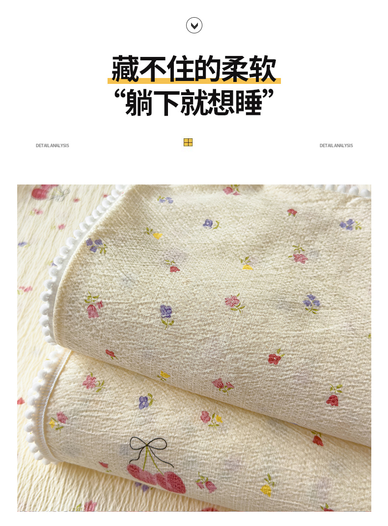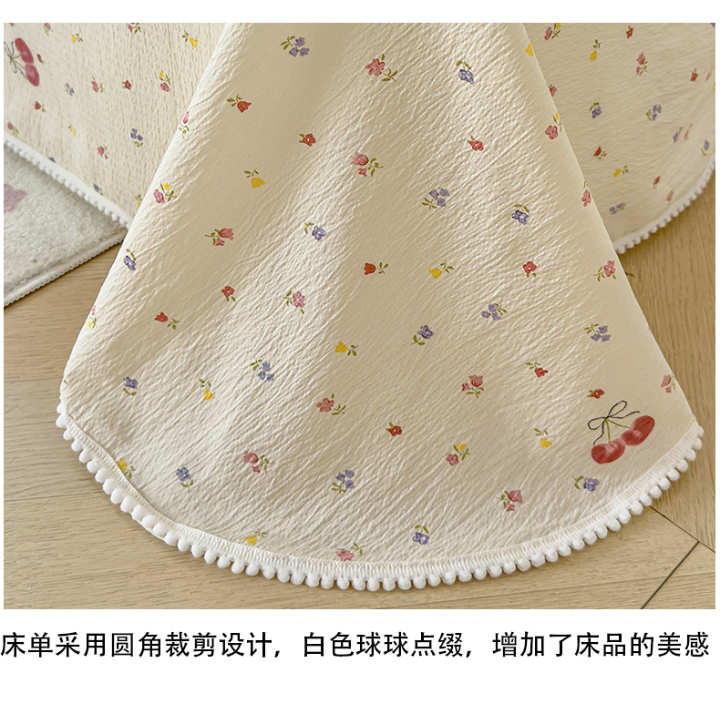 • 91家纺网 家纺一手货源 找家纺 三盛源 2025新款韩版碎花球球皱皱纱双层纱水洗棉单床单床单单件 樱甜小筑