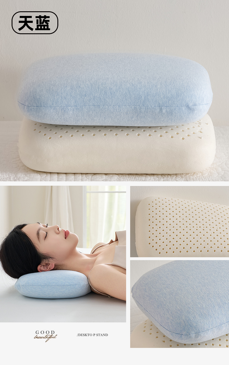 商品名称:鼎盛乳胶 2025新款彩棉乳胶小面包枕 彩棉天蓝