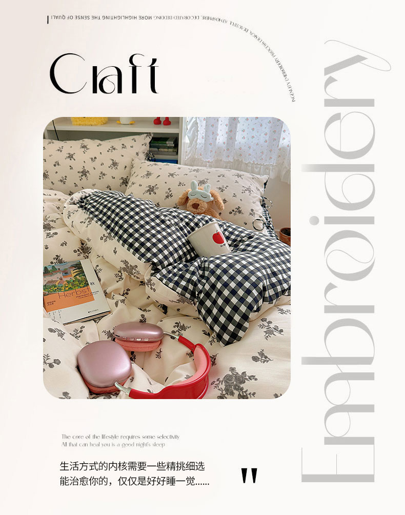 (总)初念2025新款水洗棉四件套复古格子系列,艾伦红格,复古格纹,树黑红格,英伦黑格