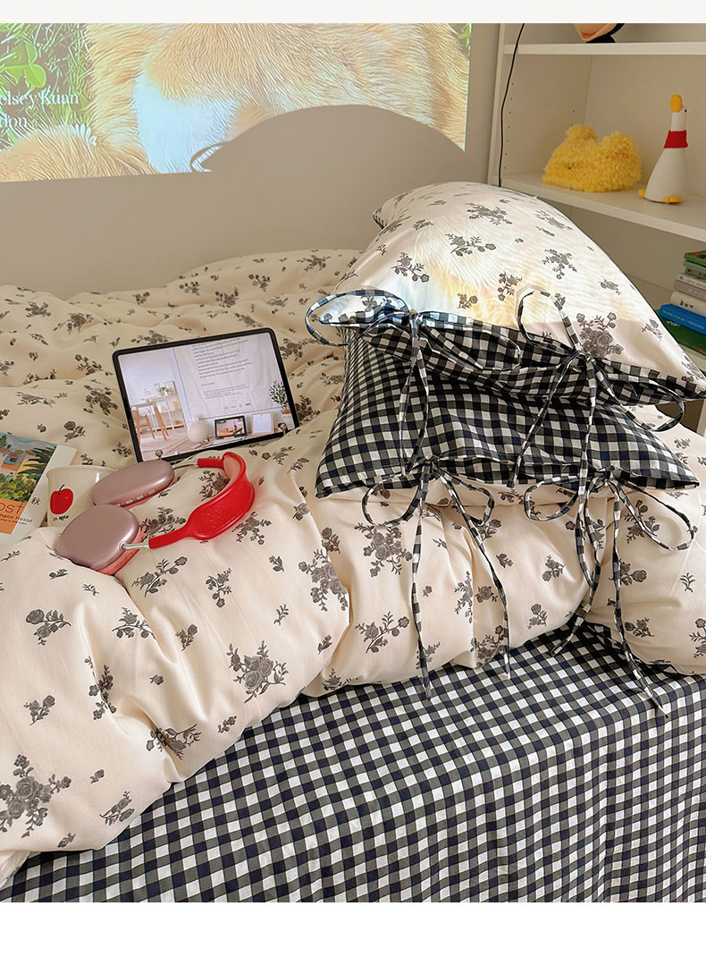 商品名称:初念 2025新款水洗棉系绳云朵棉四件套系列 系带-十里花田