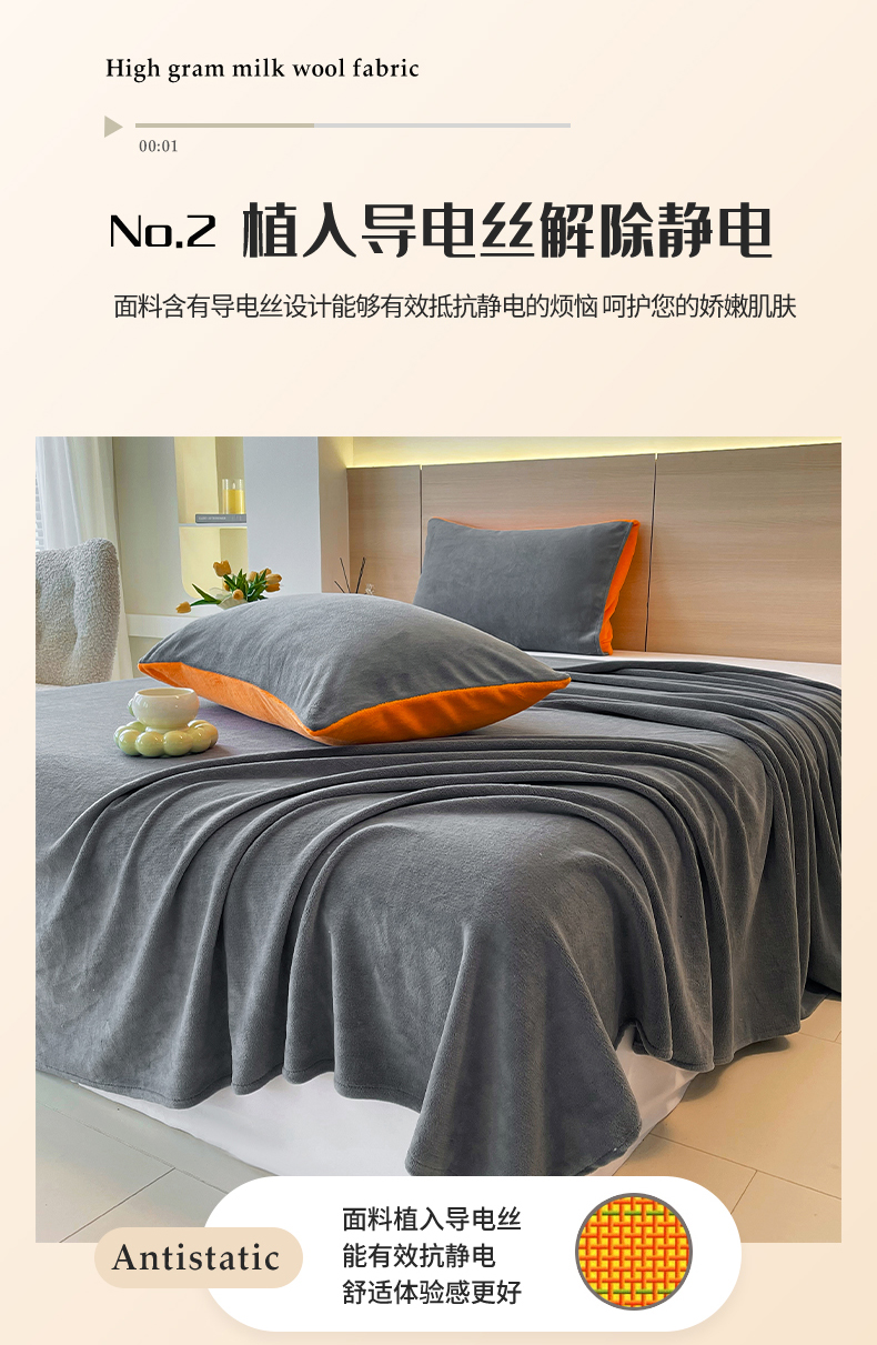 • 91家纺网 家纺一手货源 找家纺 小懒猪 2025年新款220克A类牛奶绒单床单 钛灰
