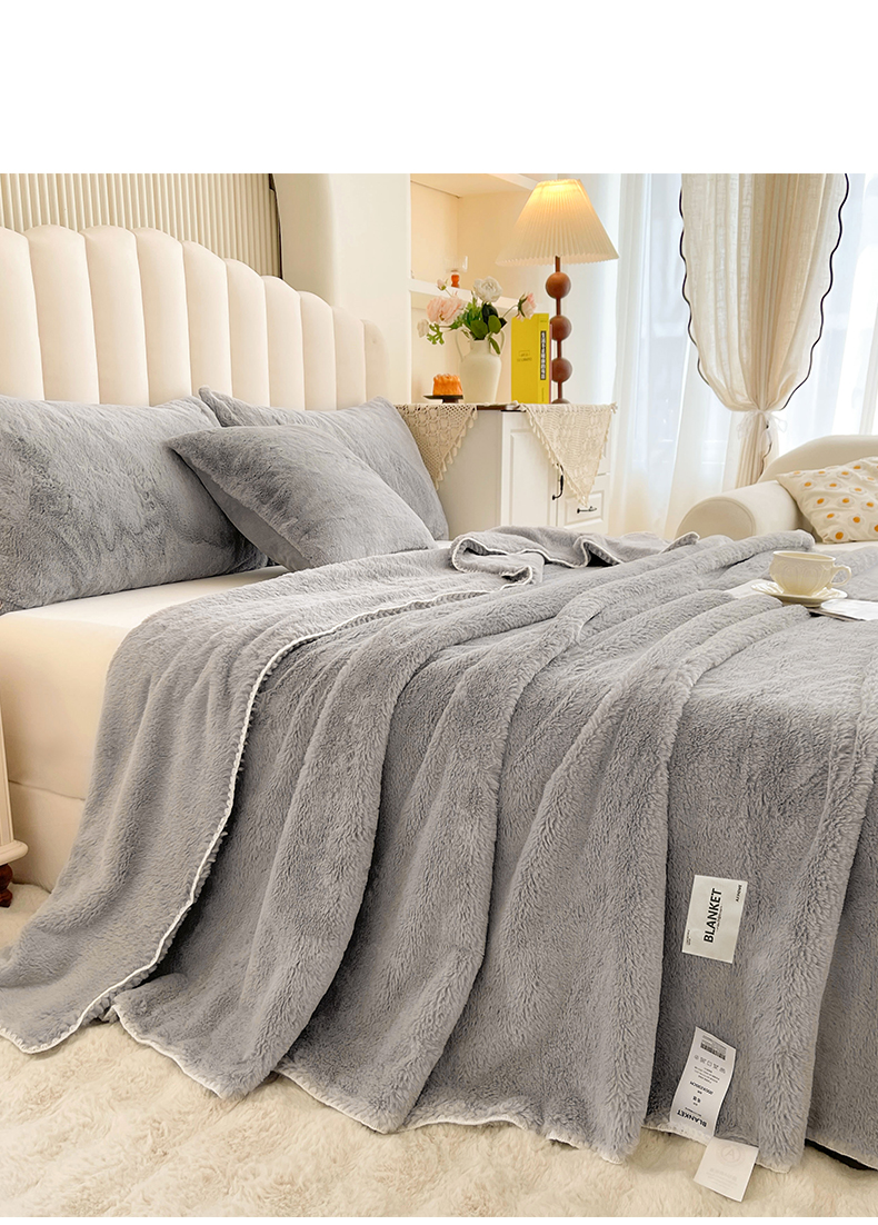 商品名称:艾佳 2025新款A类四季毯高端加厚多功能双面仿皮草仿大兔绒毛毯毯子 阿玛灰