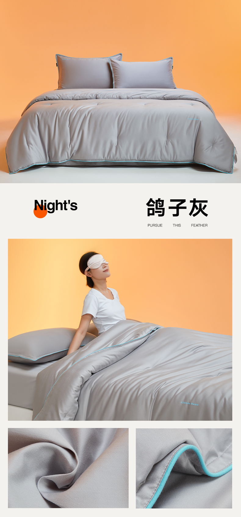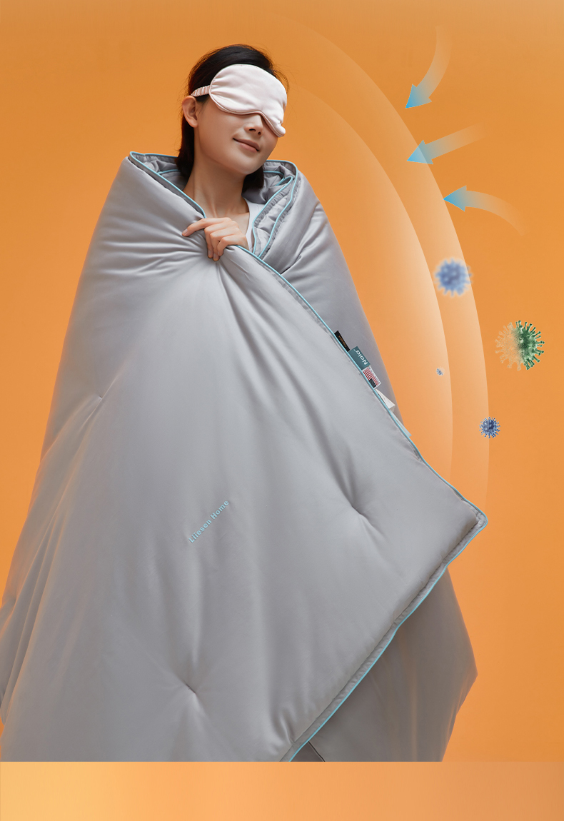• 91家纺网 家纺一手货源 找家纺 丽笙被芯 2025新款秋冬亲肤舒适80S超细旦天丝棉微磨毛素色可水洗懒人被-场景一 鸽子灰
