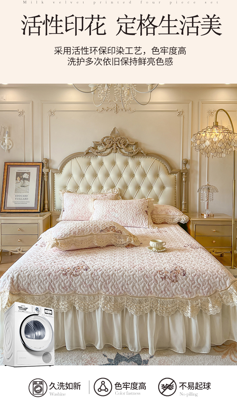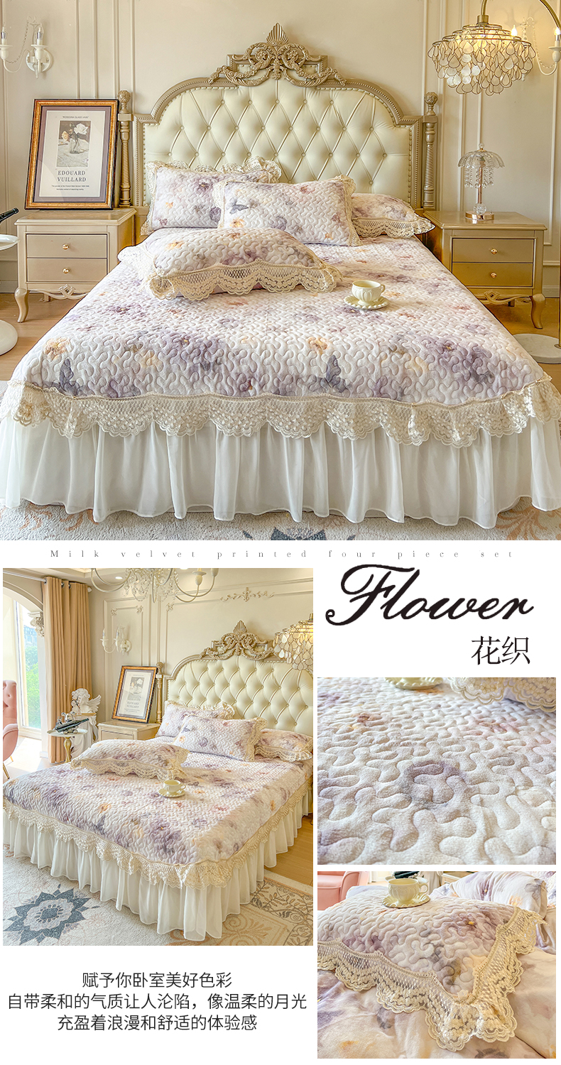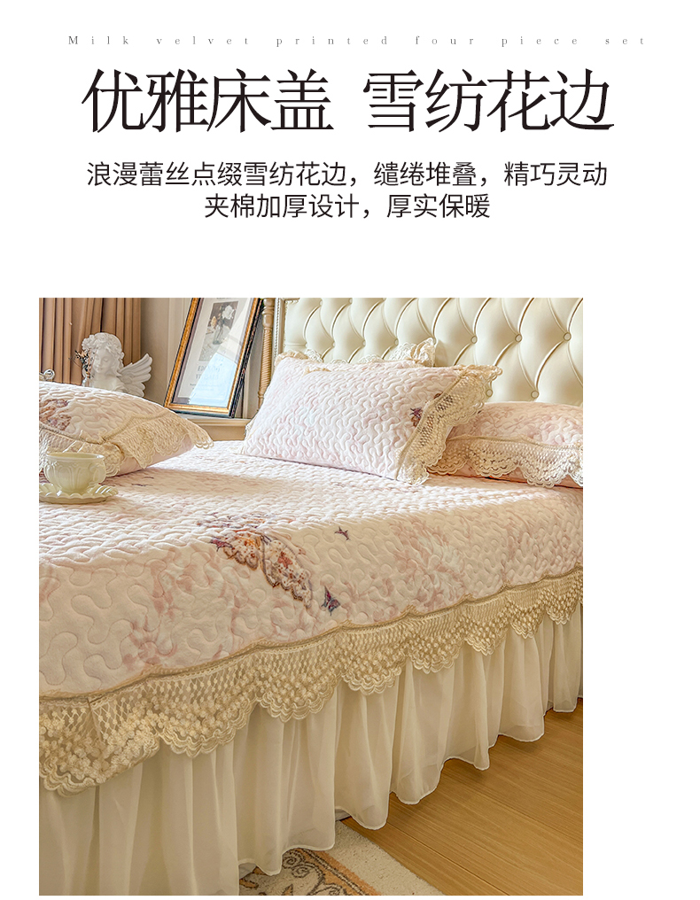 (总)网红馆(ck家纺) 2025新款亲肤舒适牛奶绒蕾丝边床裙四件套-秘密花园,秘密花园-粉色,秘密花园-卡其,秘密花园-米色,秘密花园-紫色
