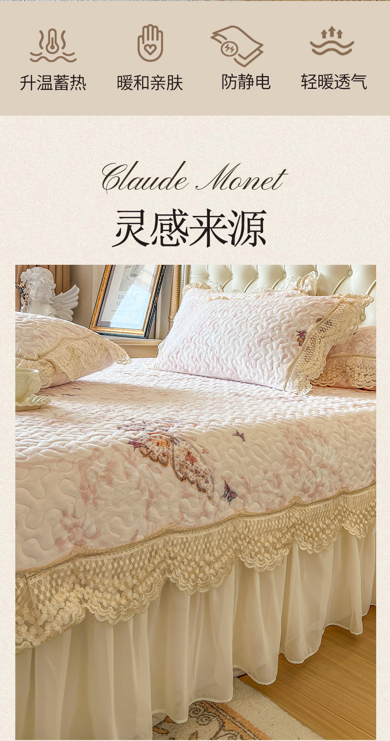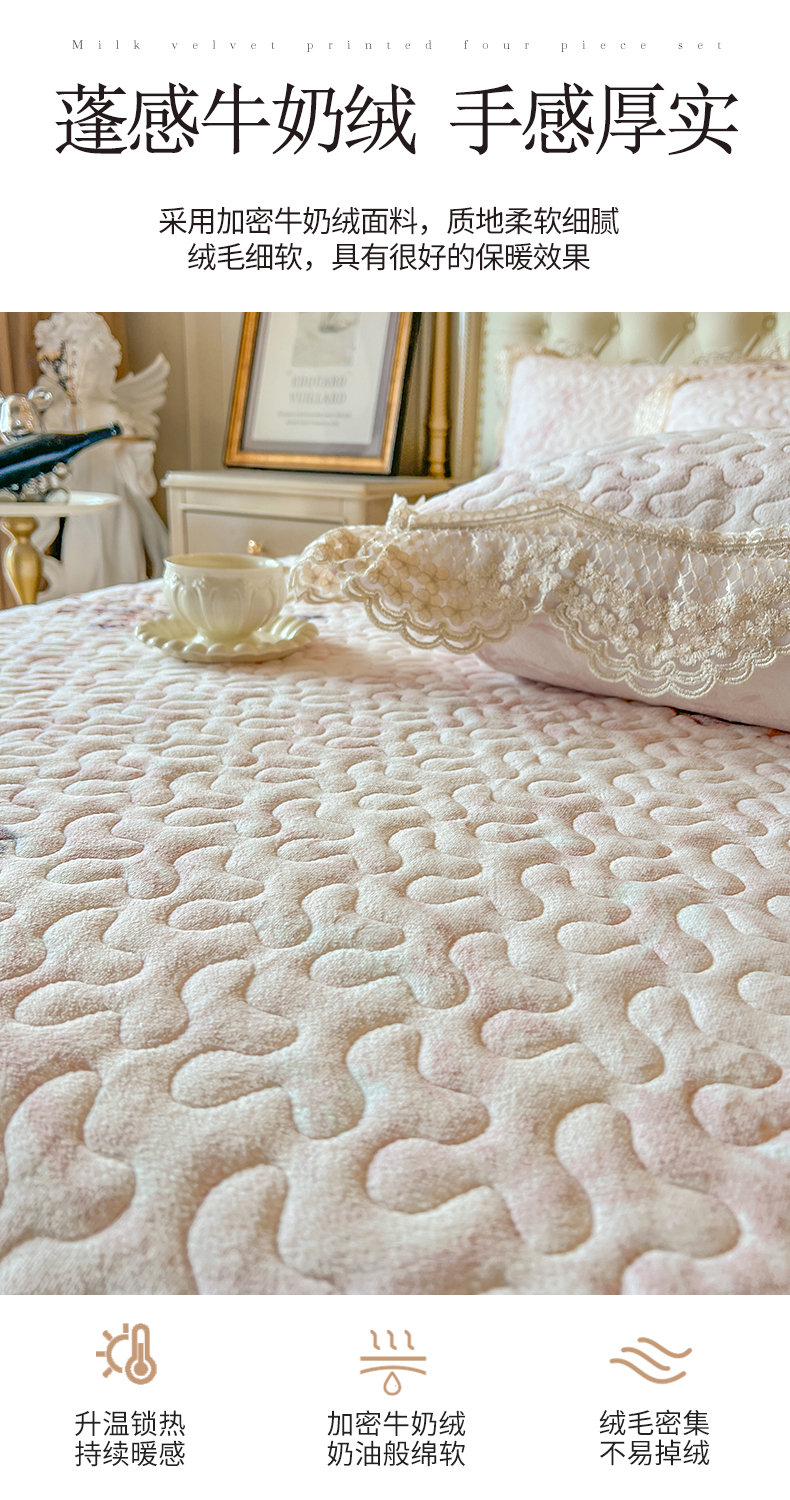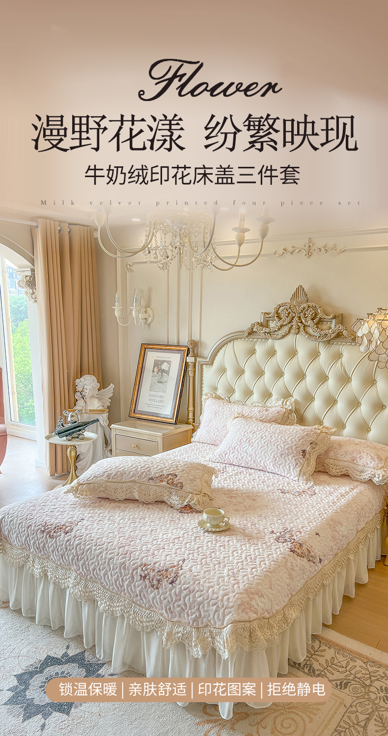 商品名称:网红馆(ck家纺) 2025新款牛奶绒印花床盖三件套 阿黛尔