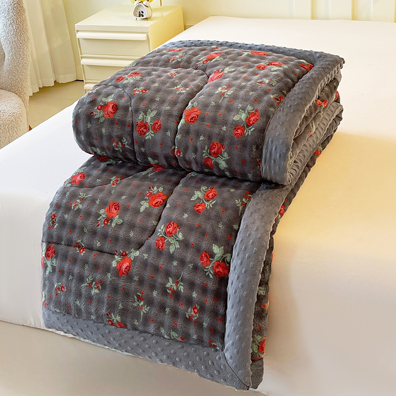 商品名称:云家 2025直播热款兔兔绒豆豆被三层夹棉加厚毛毯毯子牛奶绒冬被泡泡兔毛绒保暖被子被芯 红玫瑰