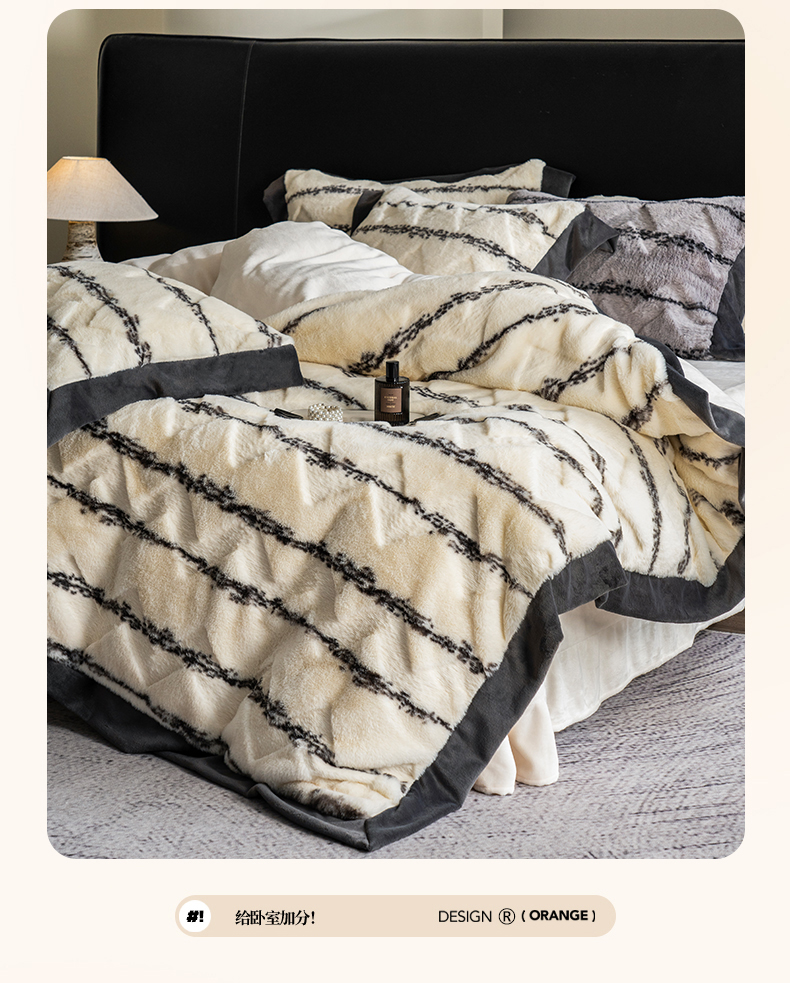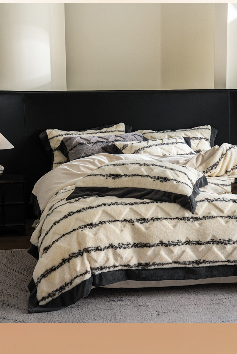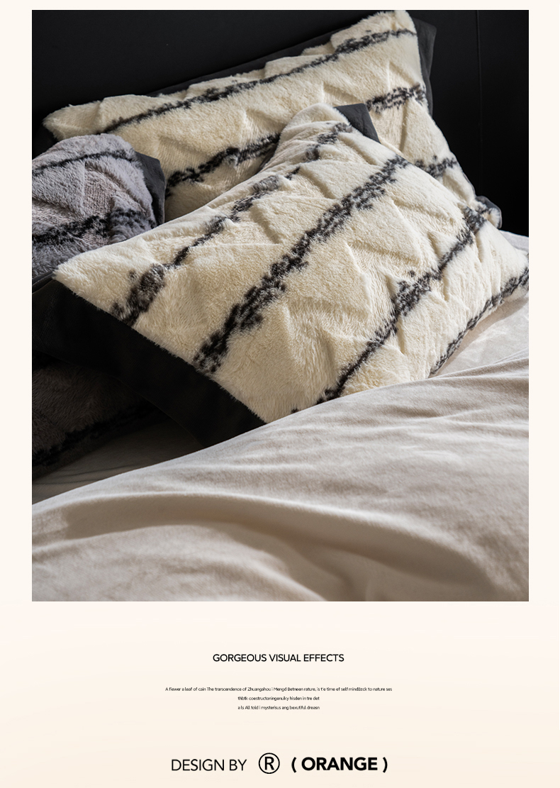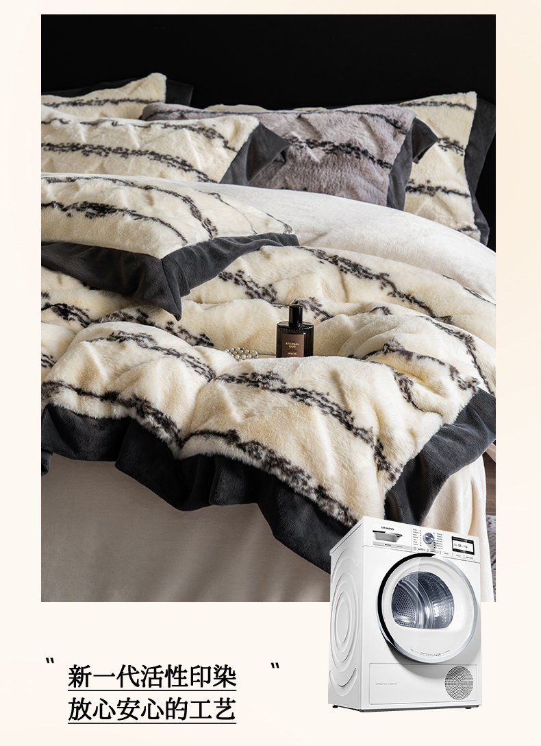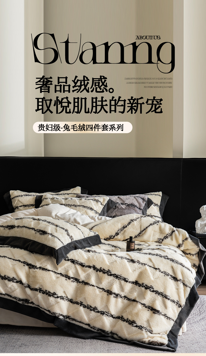 商品名称:凯罗 2025秋冬兔绒四件套 轻奢风兔绒四件套 高端兔兔绒四件套 云绒白