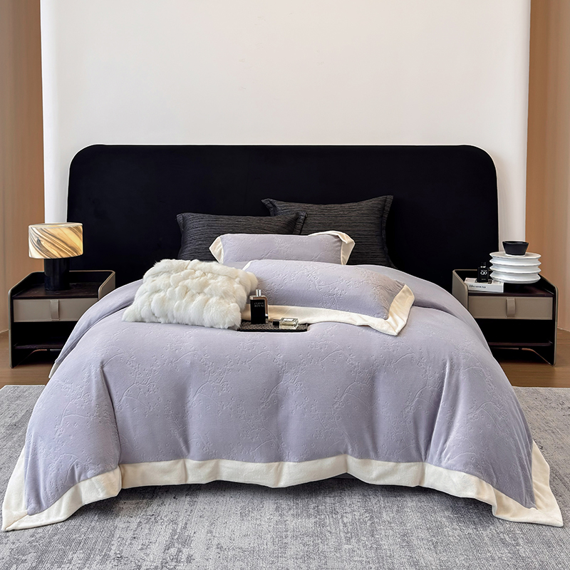 商品名称:(总)若未家居 LOVEWE HOUSE 2025新款250克高克重全消光雕花牛奶绒拼角工艺款四件套-桃林春晓