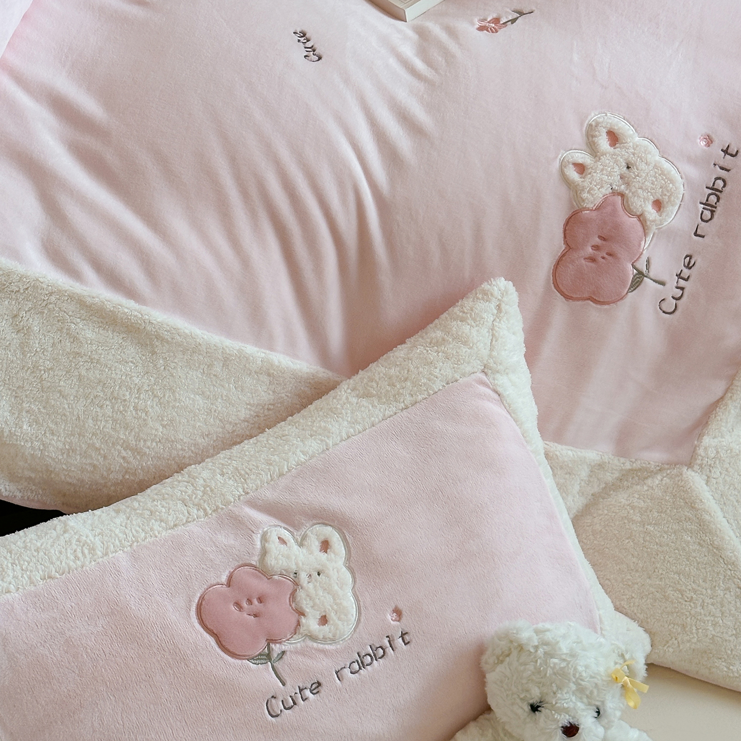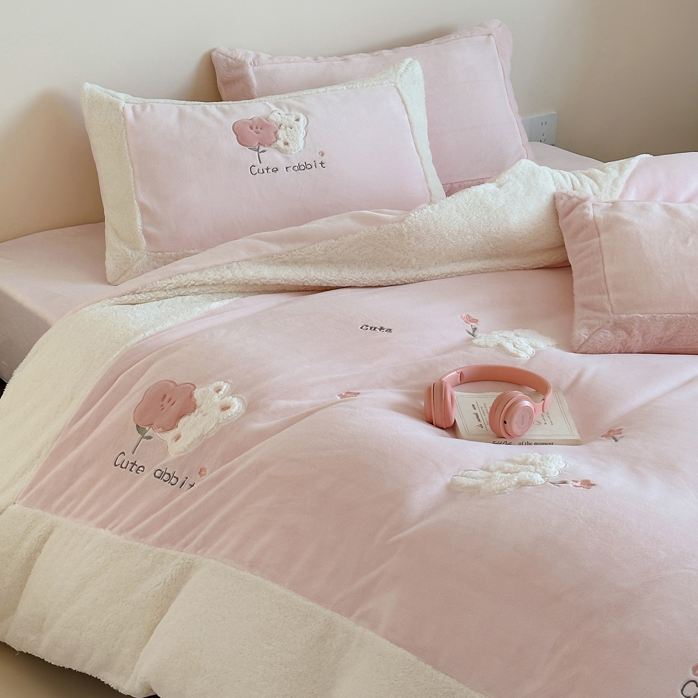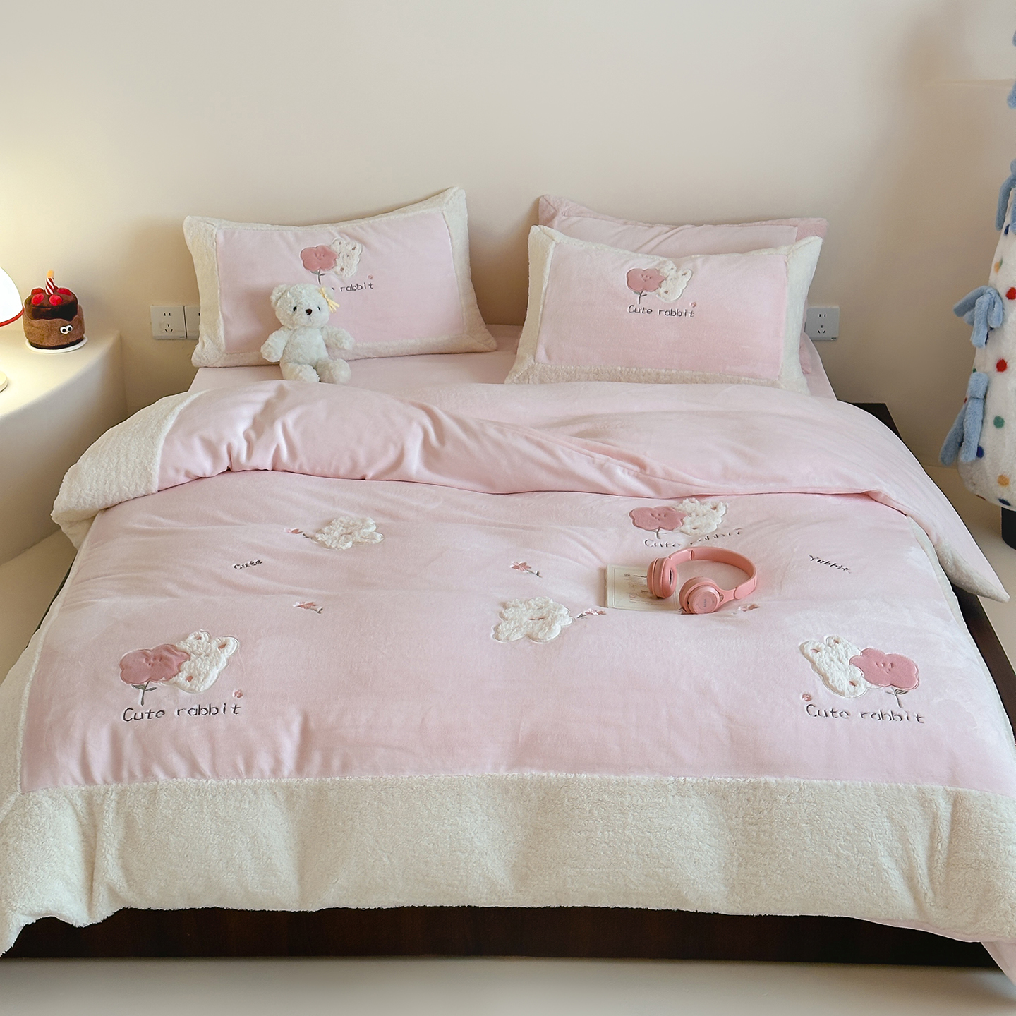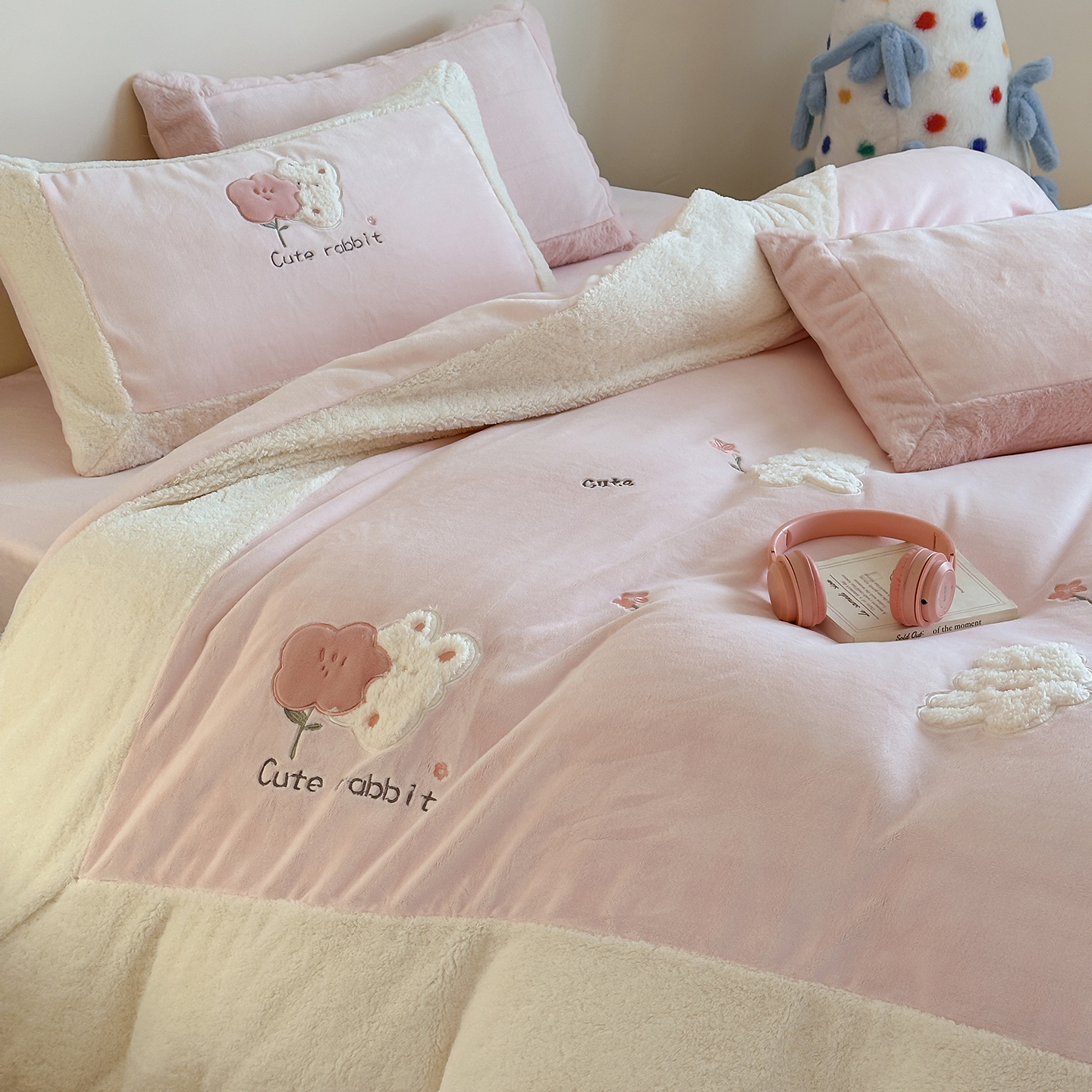 (总)佳汐蓝家纺 2025新款230g牛奶绒贴布刺绣四件套-小白兔(控价:卷后不低于268/298/318元)