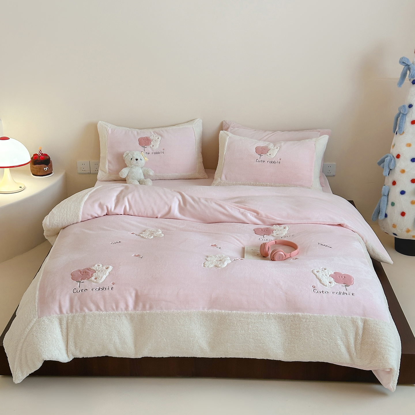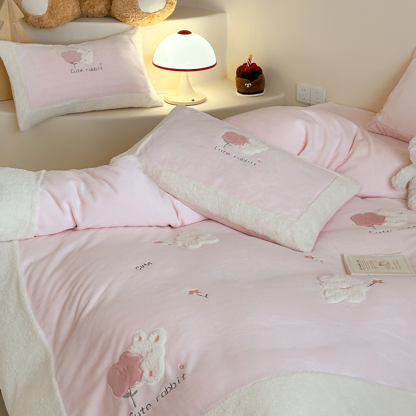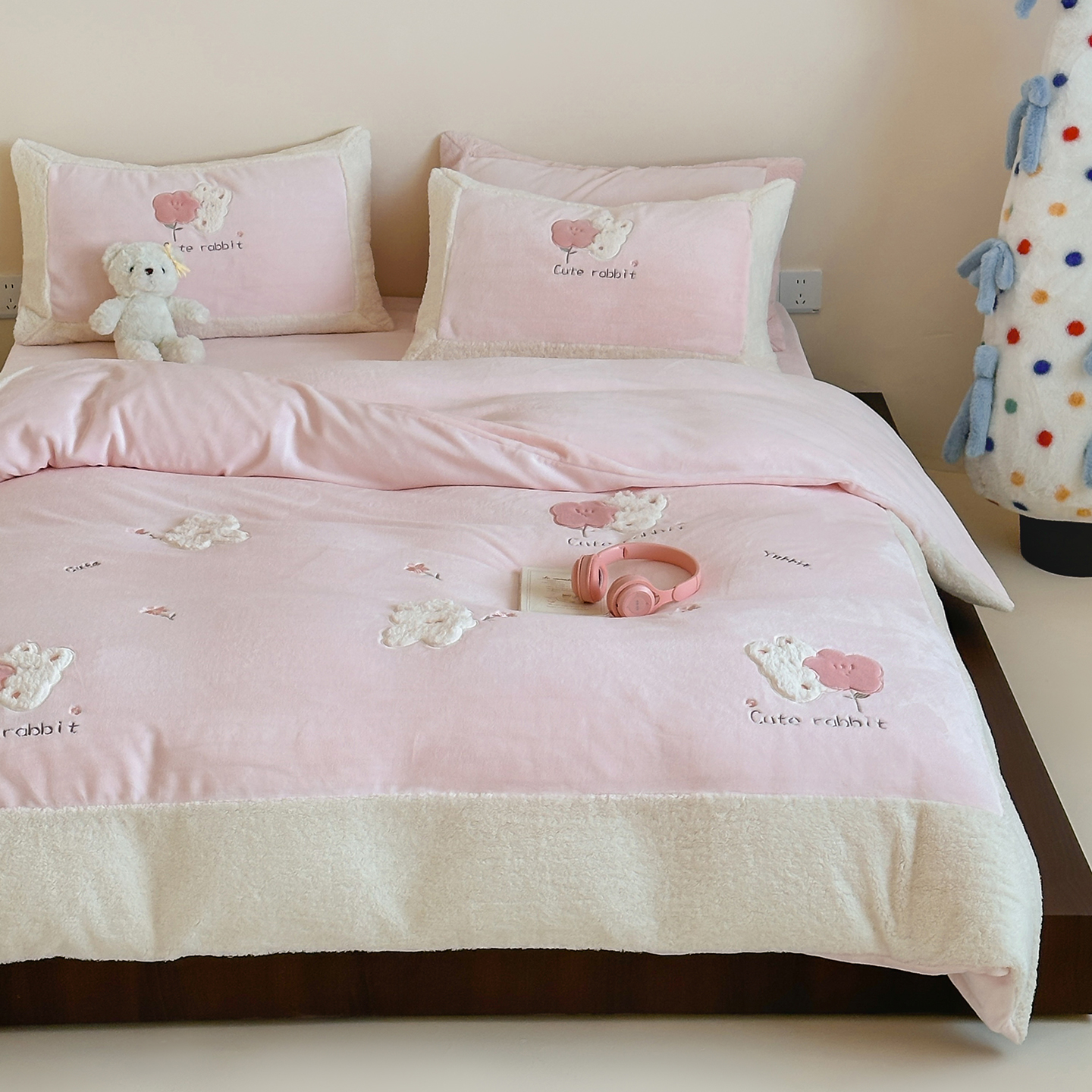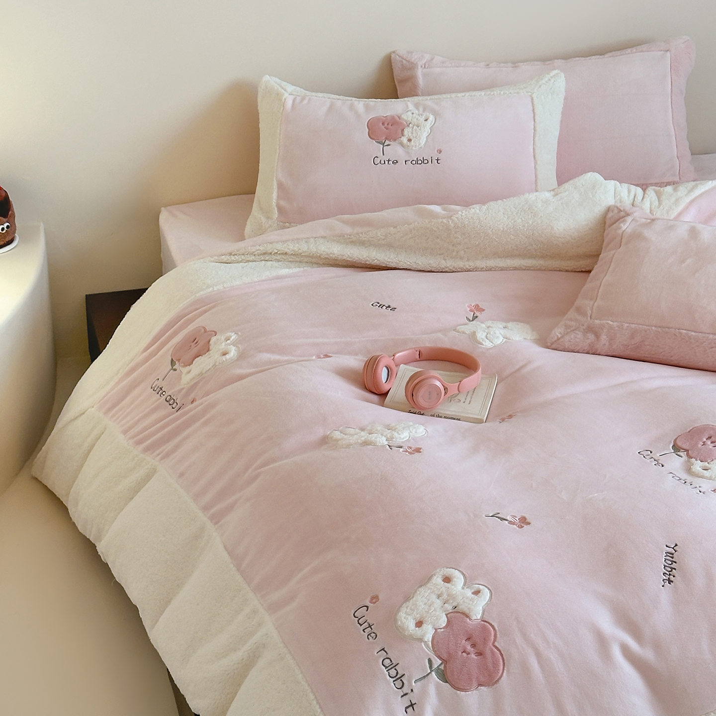 (总)佳汐蓝家纺 2025新款230g牛奶绒贴布刺绣四件套-小白兔(控价:卷后不低于268/298/318元)