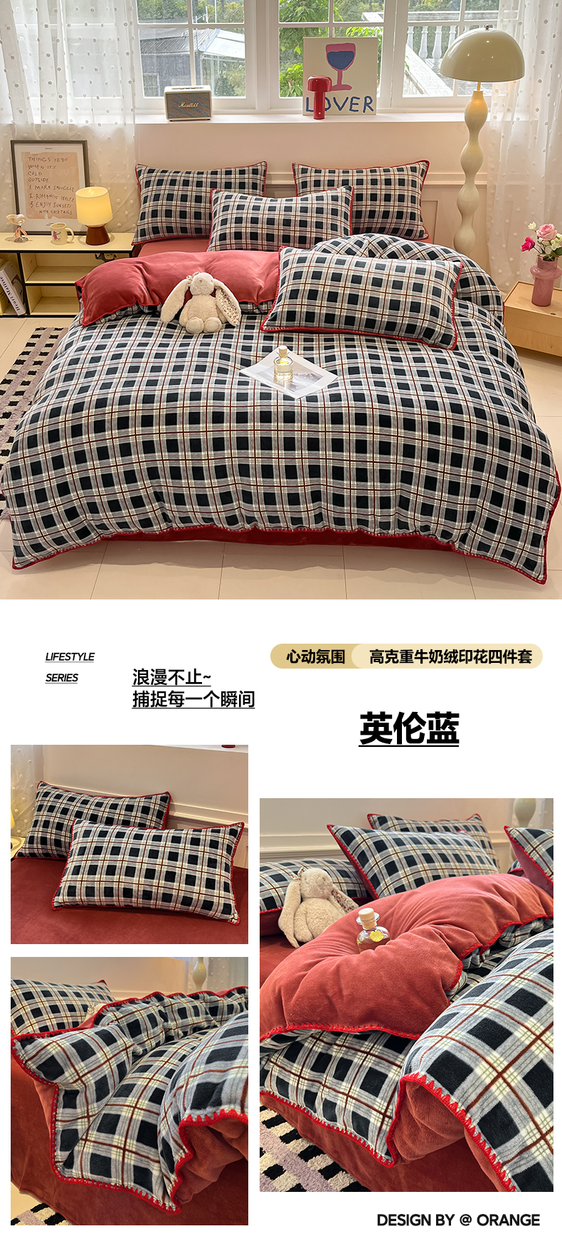 (总)如一 2025新款A类高克重牛奶绒印花三角针工艺四件套,秘境蓝,安梦,暗香,格韵咖,流年绿,芒种,秋思咖,香榭,芽青,雅韵蓝,英伦红,英伦蓝