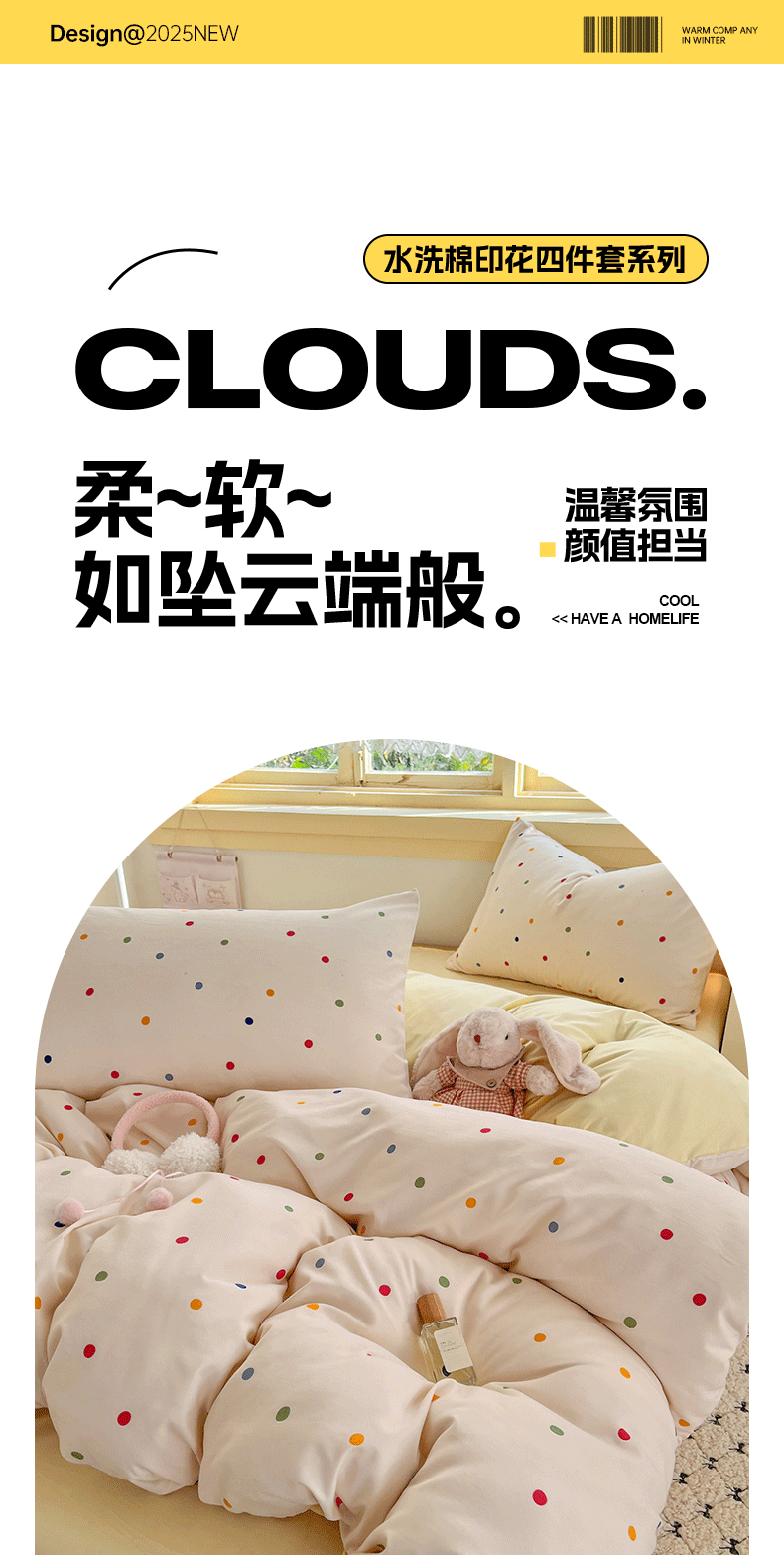 当前位置: 91家纺网 > 商品网购 > 床品套件 > 四件套 > 水洗棉四件套 > 曼璐家纺 2025新款碎花双拼水洗棉四件套学生宿舍三件套单双人被套和床笠款-床单床笠套件 奶油波波