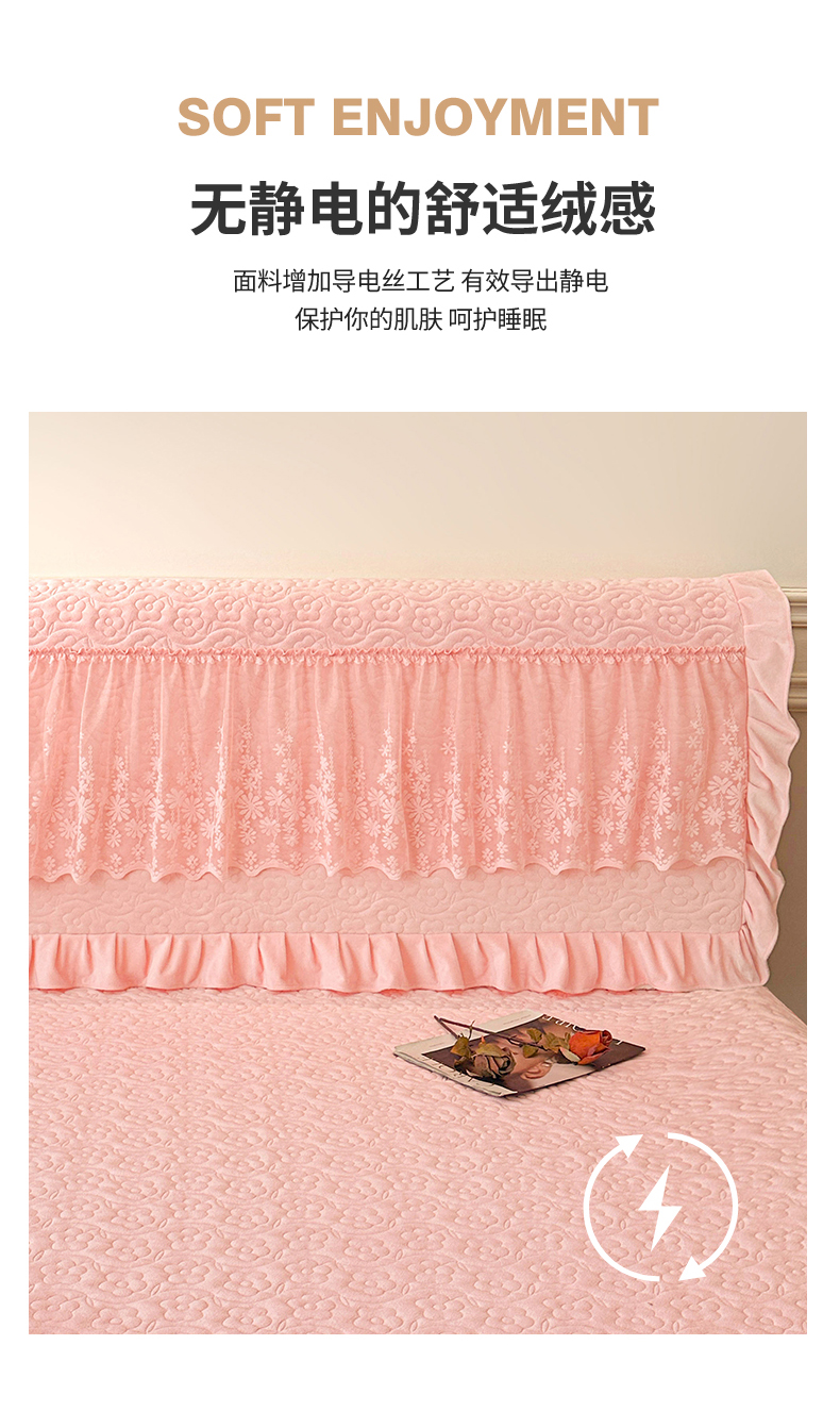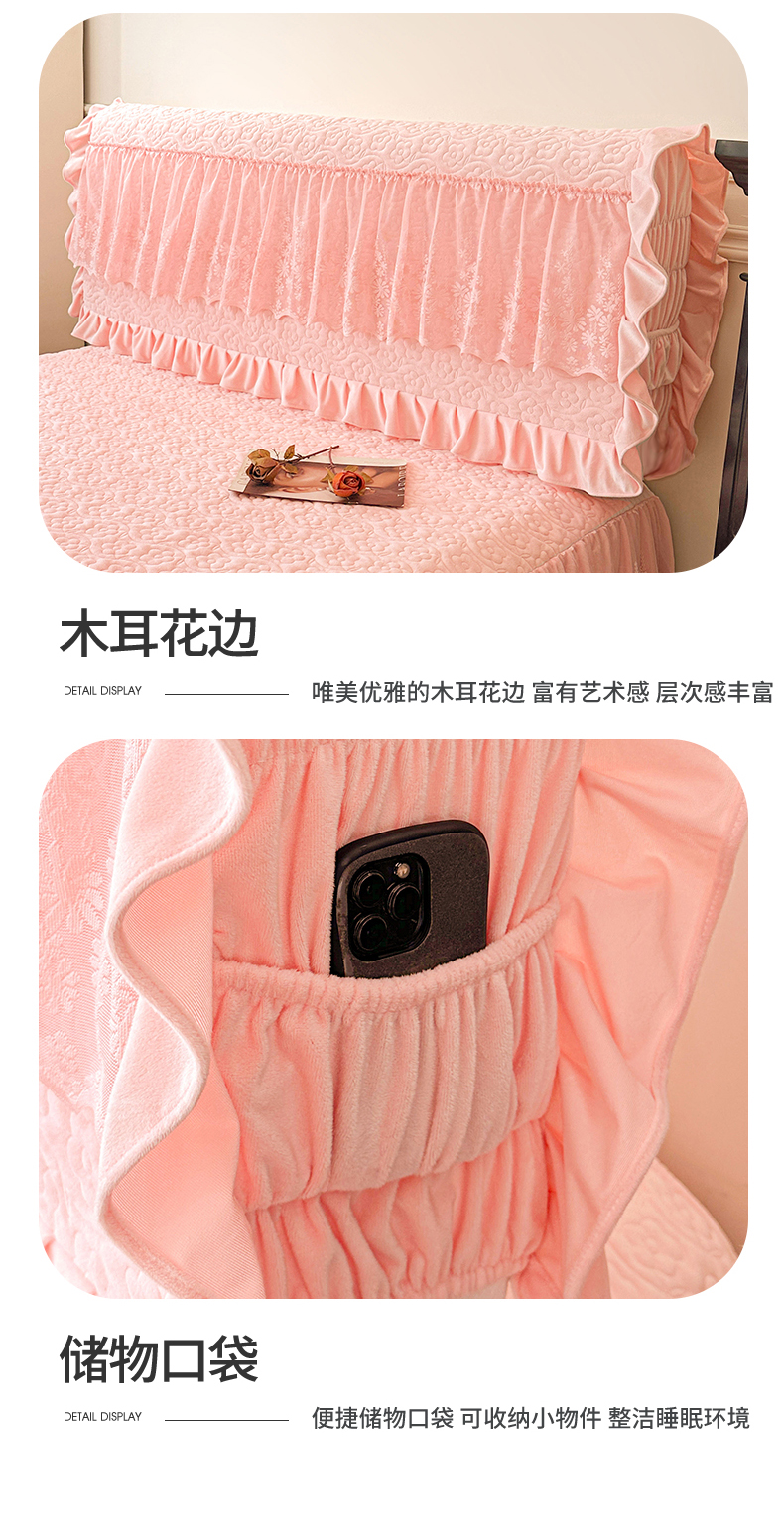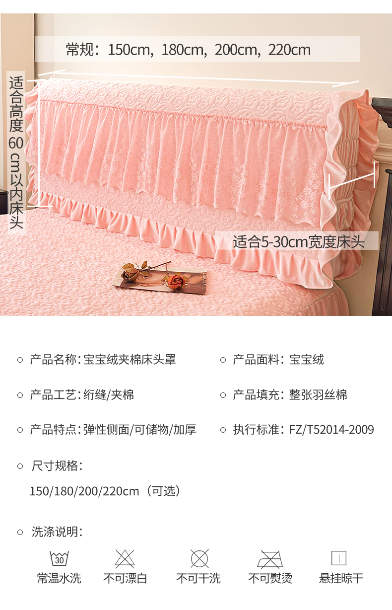 商品名称:情恒家纺 2025新款宝宝绒夹棉单品床头罩床头罩单件 玫瑰盛典-香妃粉
