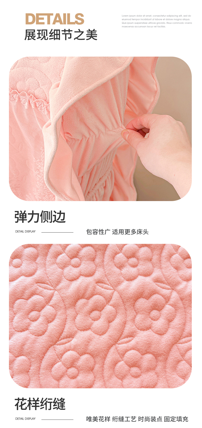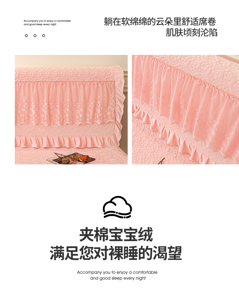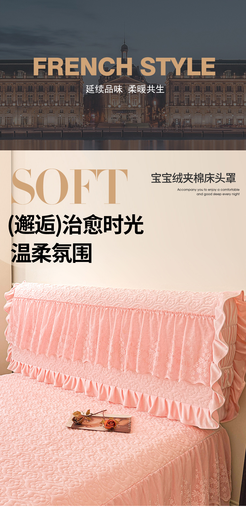 商品名称:情恒家纺 2025新款宝宝绒夹棉单品床头罩床头罩单件 玫瑰盛典-香妃粉