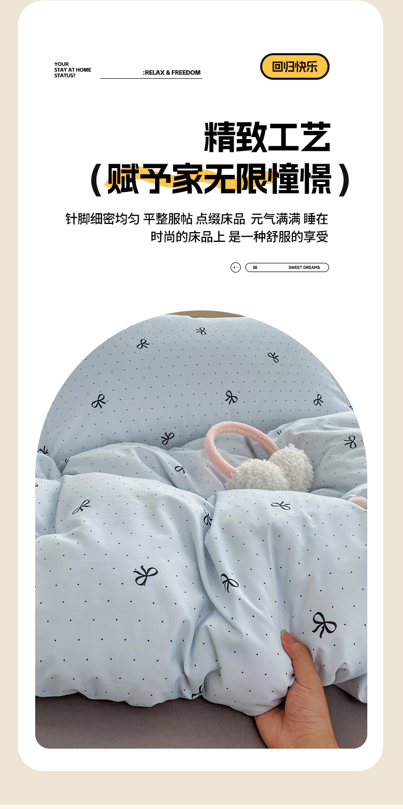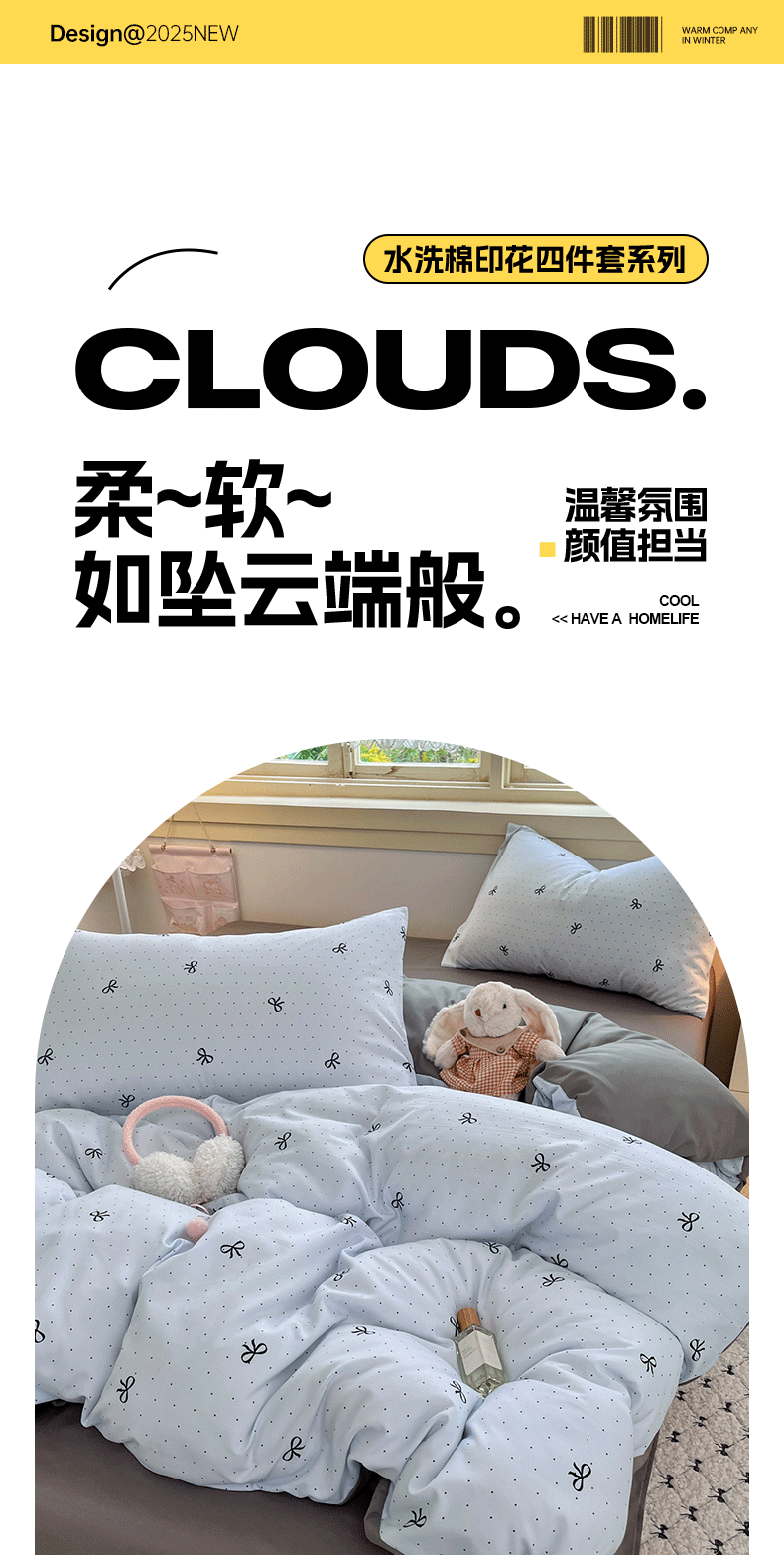 (总)曼璐家纺 2025新款小清新芦荟棉印花四件套,朝花夕拾,初夏,可可西里,喵星人,叶雨,初夏