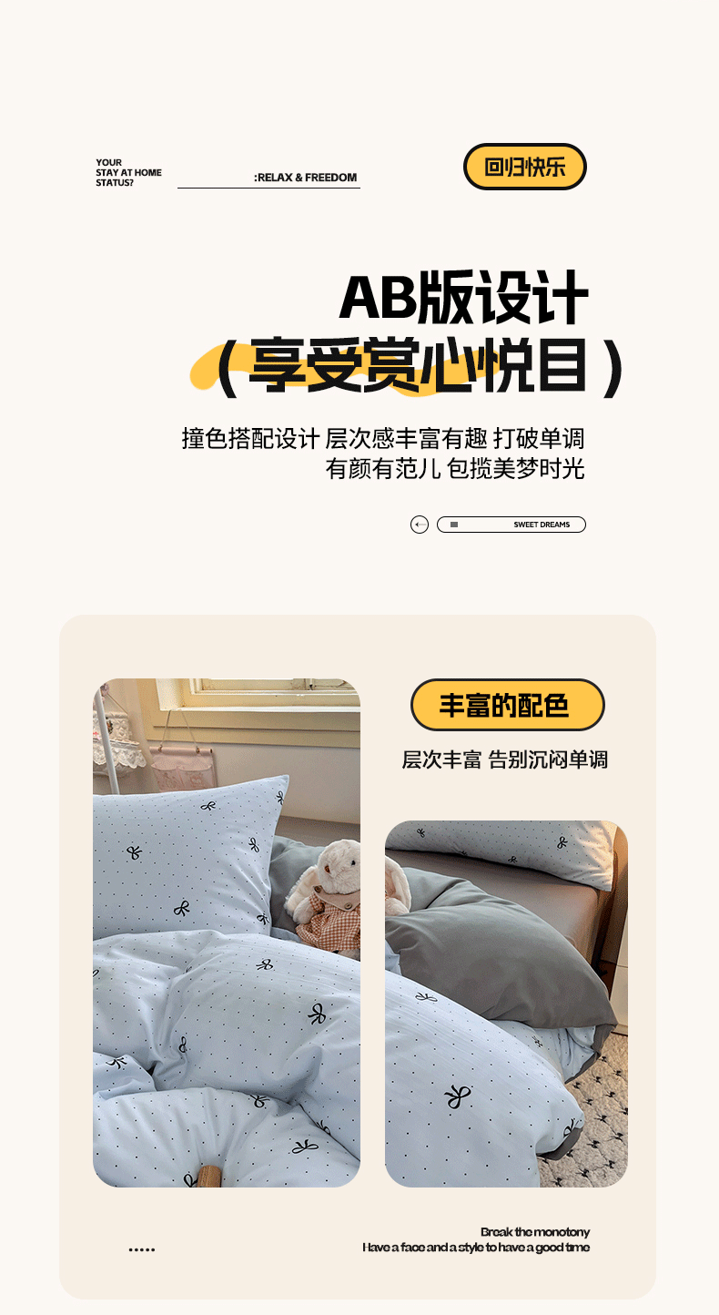 商品名称:曼璐家纺 2025新款碎花双拼水洗棉四件套学生宿舍三件套单双人被套和床笠款单被套 可颂-兰