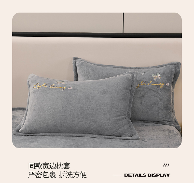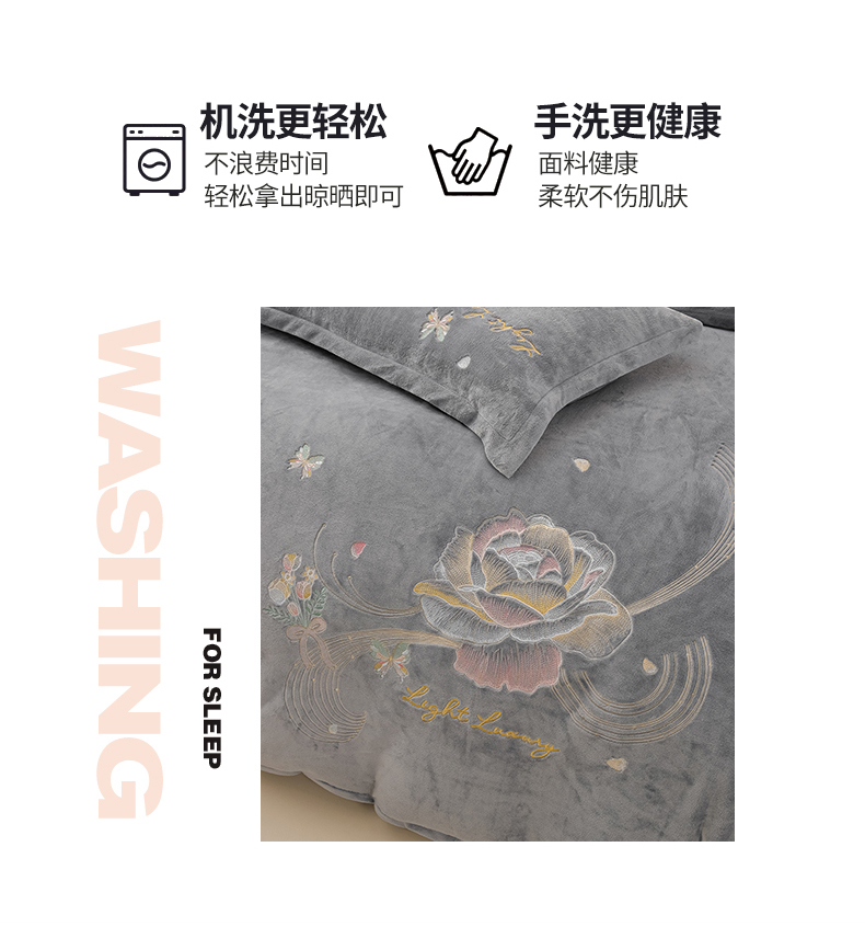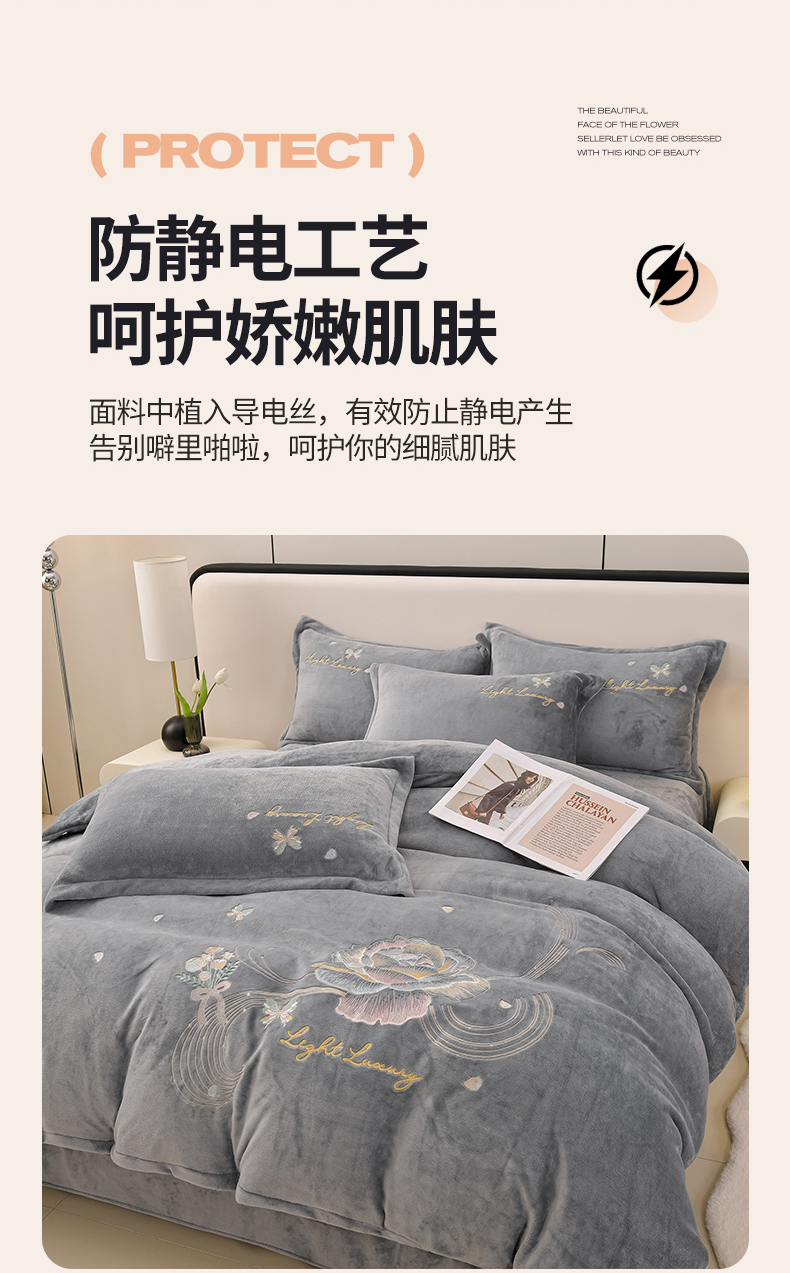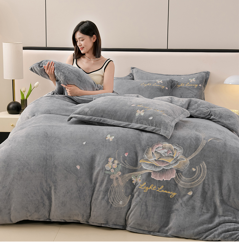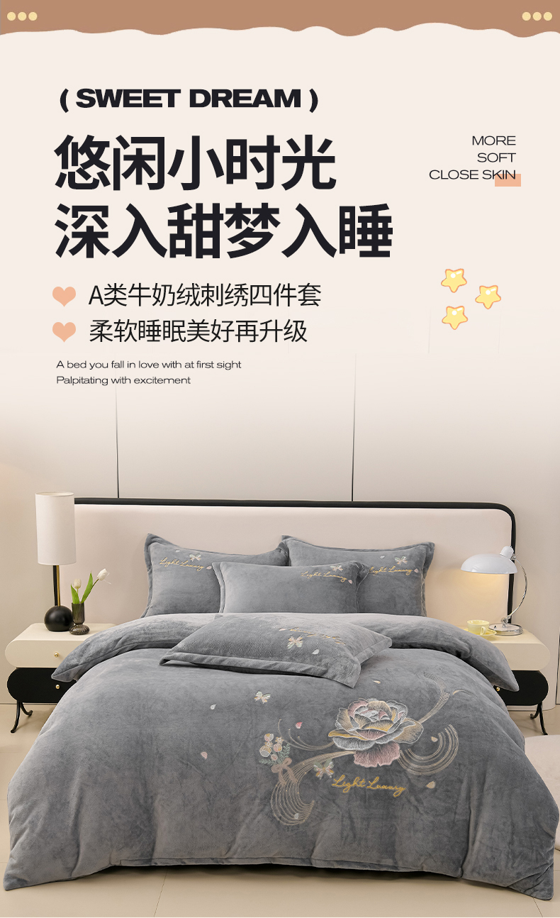 商品名称:绒小宣 2025新款A类牛奶绒刺绣四件套-蝶恋花 帝都灰