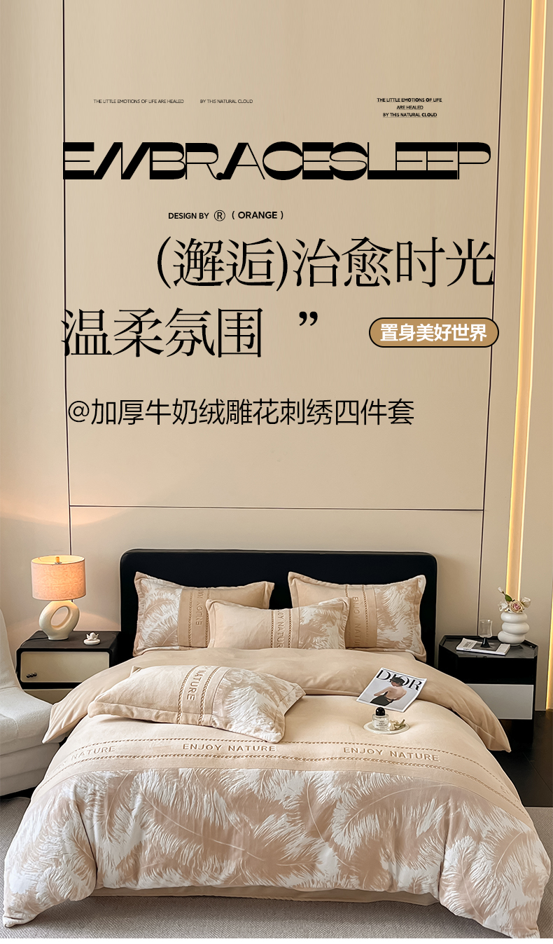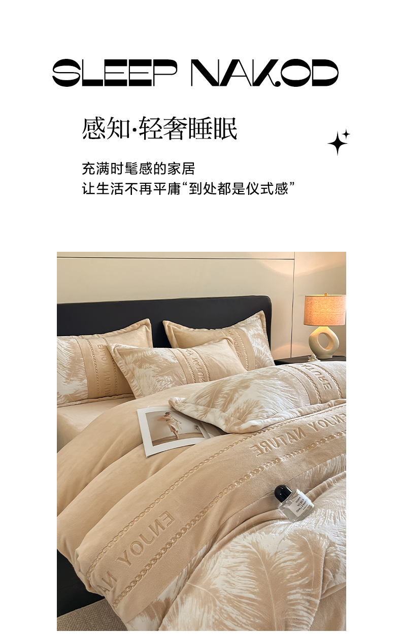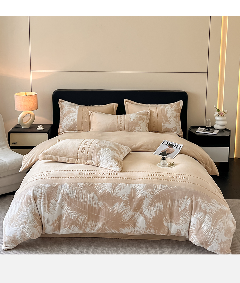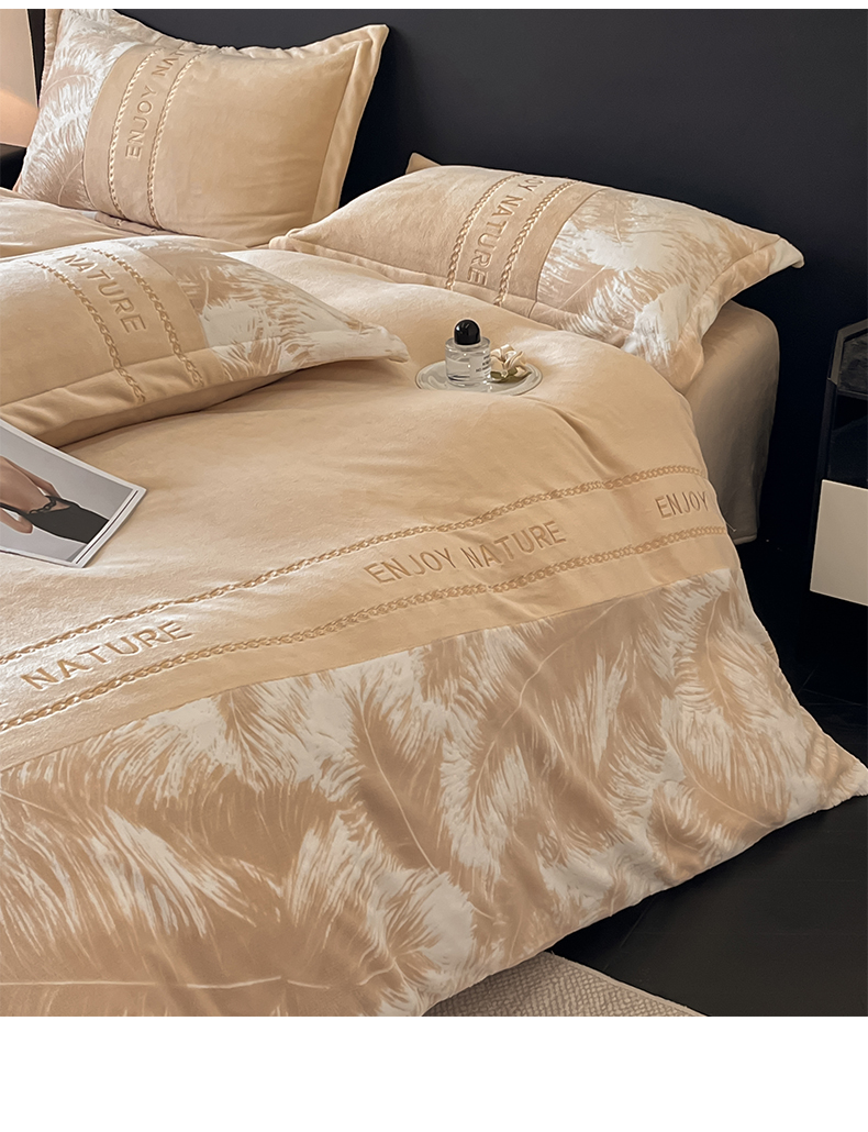 当前位置: 91家纺网 > 商品网购 > 床品套件 > 四件套 > 牛奶绒四件套 > 博纳家纺 2025新款加厚牛奶绒雕花刺绣四件套-飞羽 控价劵后168(严格按控价来) 飞羽-香槟