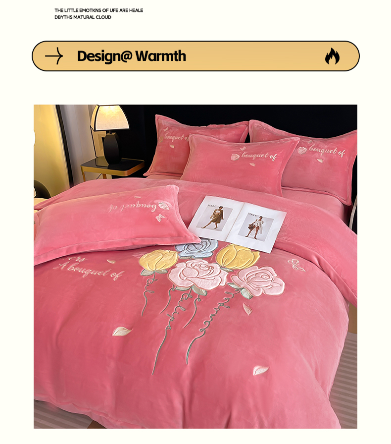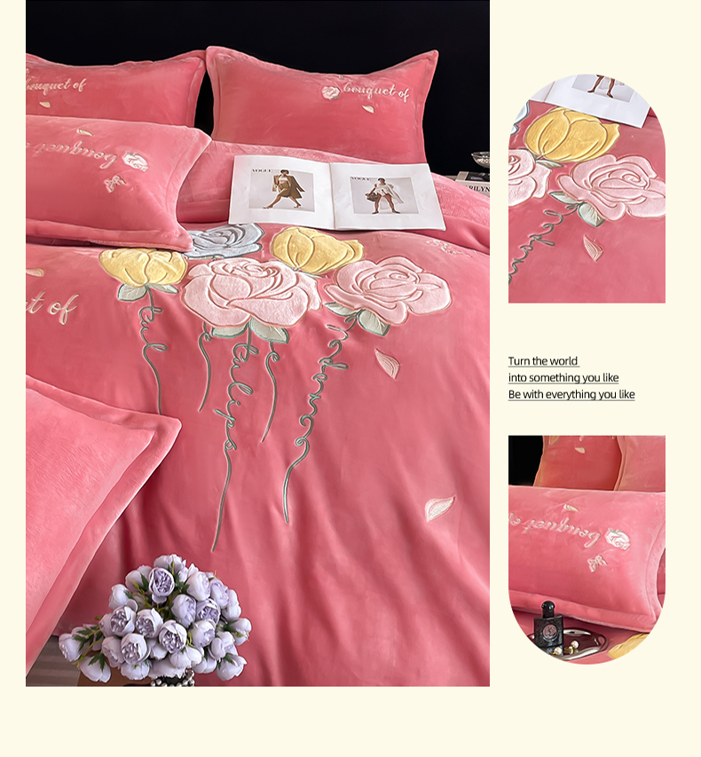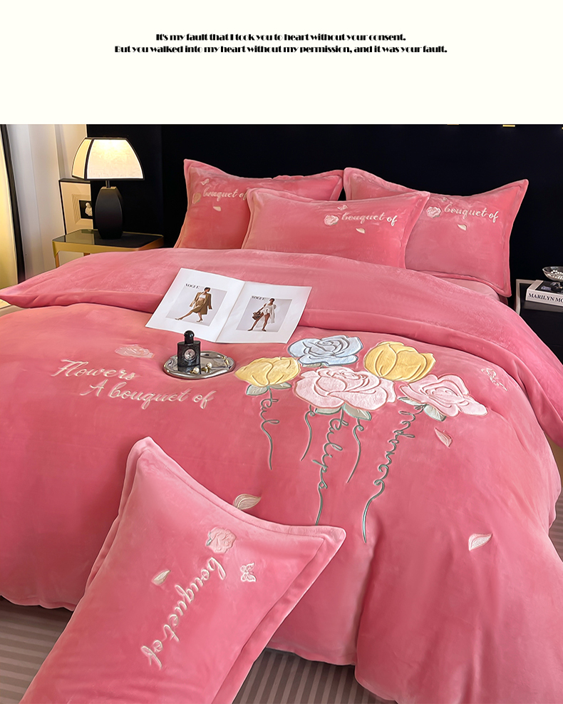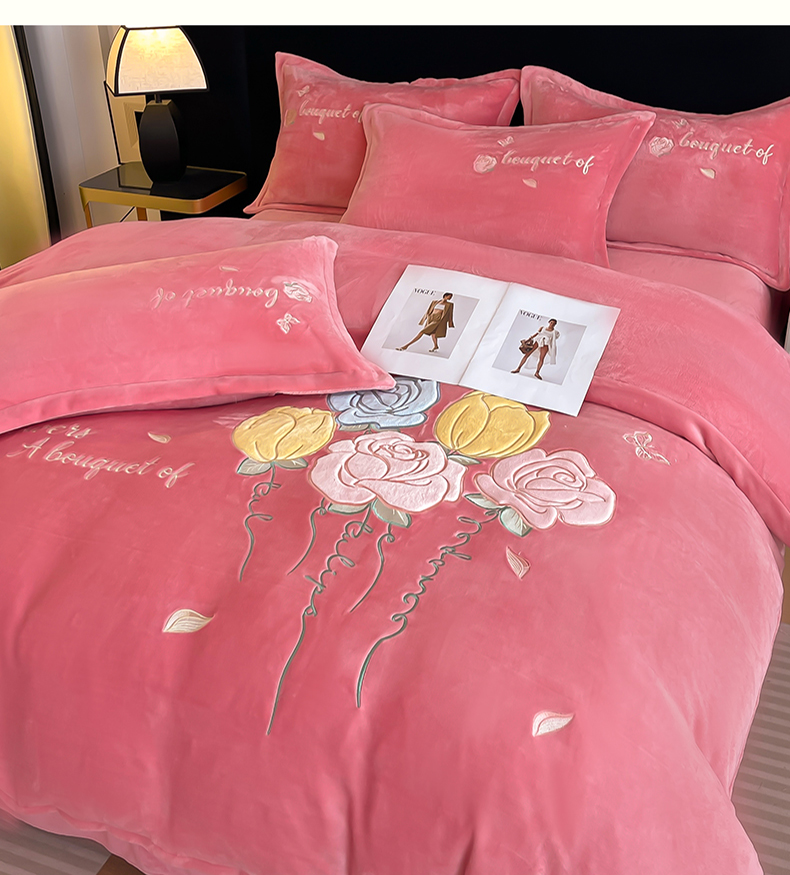 (总)绒小宣 2025新款A类牛奶绒贴布绣四件套-玫瑰爱恋