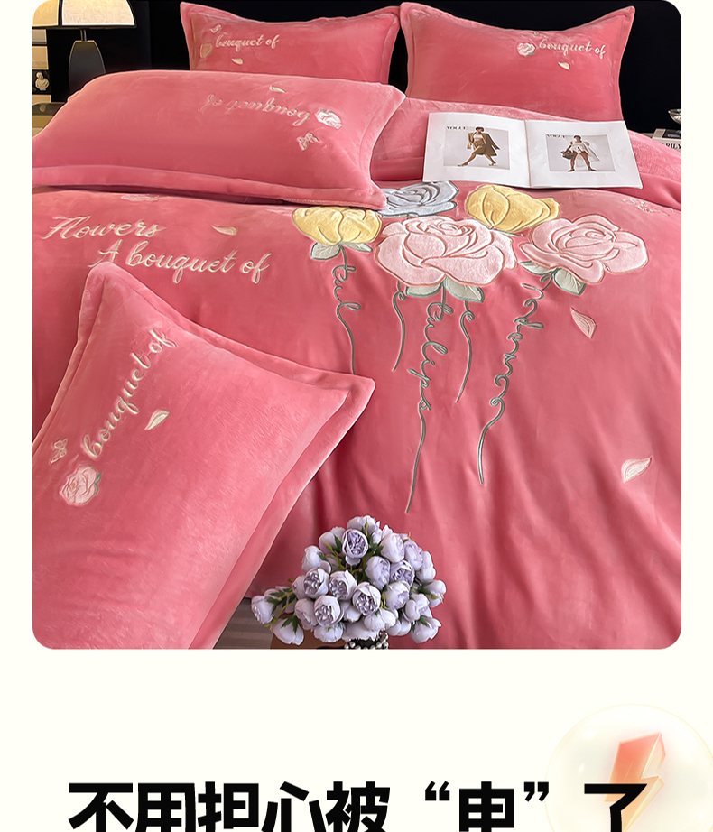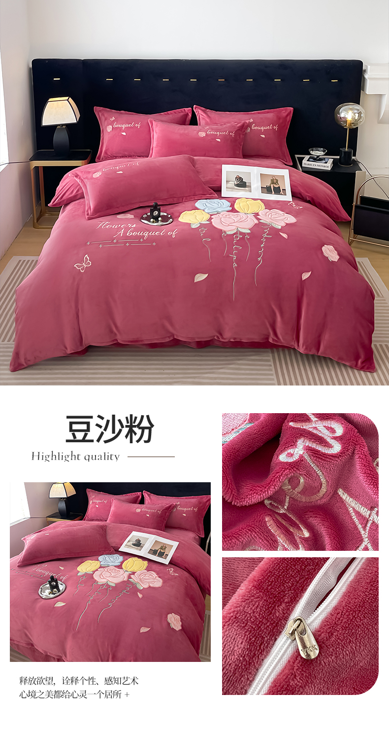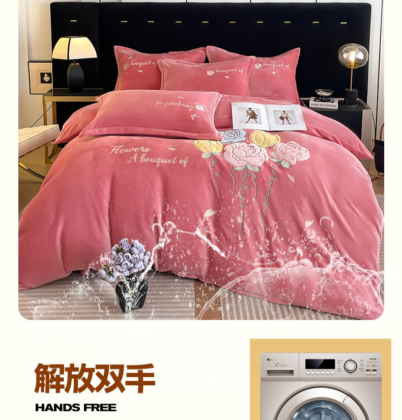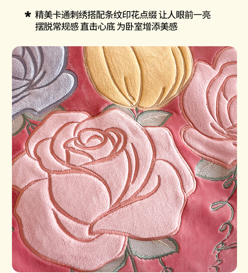 商品名称:(总)绒小宣 2025新款A类牛奶绒贴布绣四件套-玫瑰爱恋