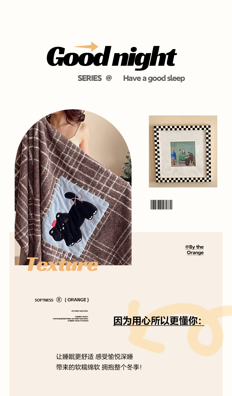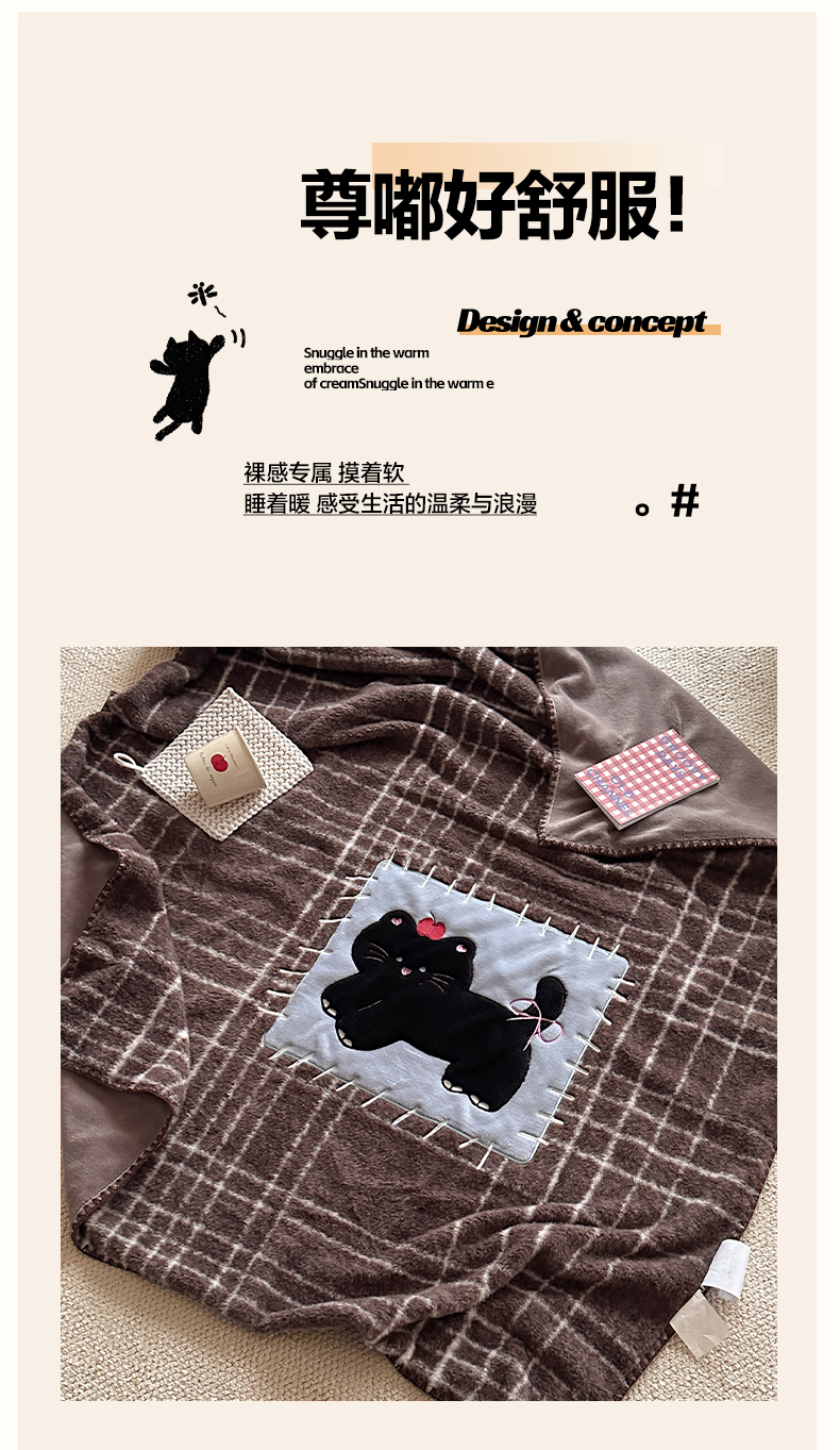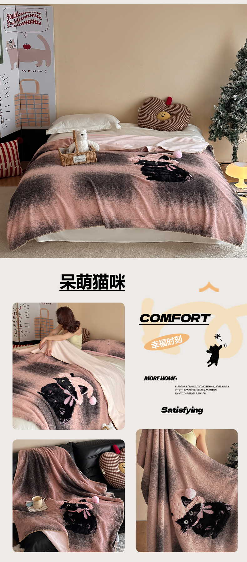 宇航家纺 2025新款美拉德色系仿羊毛绒牛奶绒毛毯盖毯办公毯 盖毯-三只小猫
