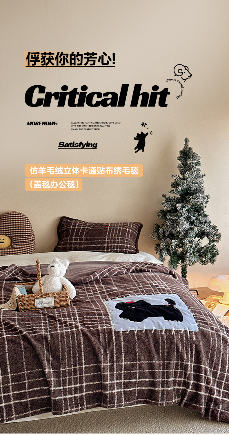 (总)宇航家纺 2025新款美拉德色系仿羊毛绒牛奶绒毛毯盖毯办公毯,盖毯-煤球小猫,盖毯-呆萌猫咪,盖毯-福宝小狗,盖毯-三只小猫