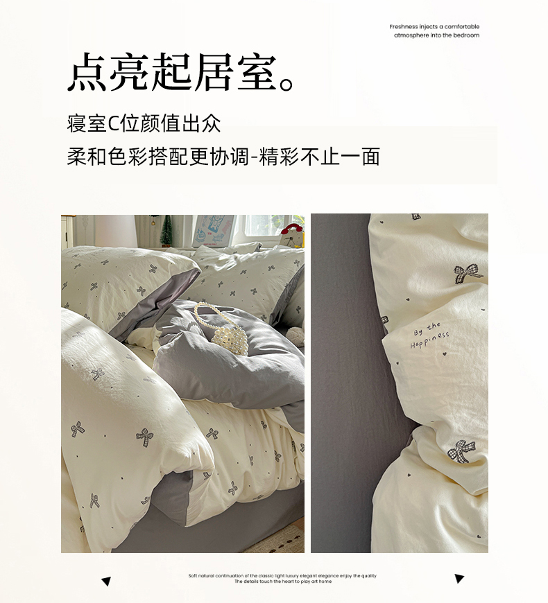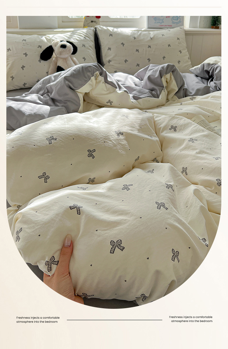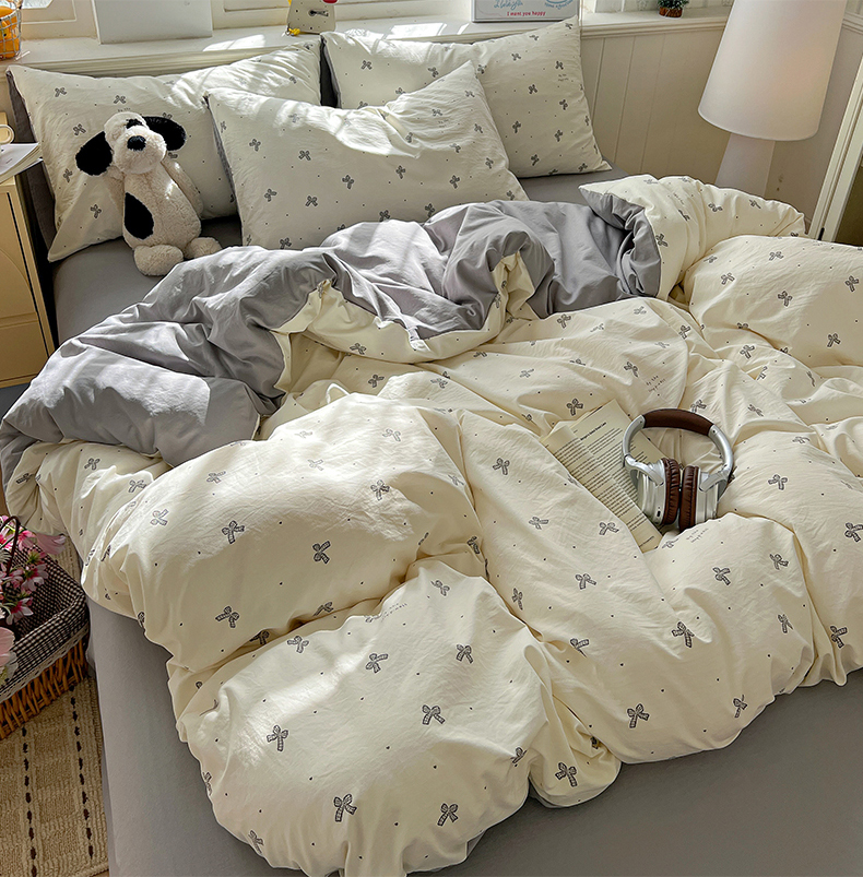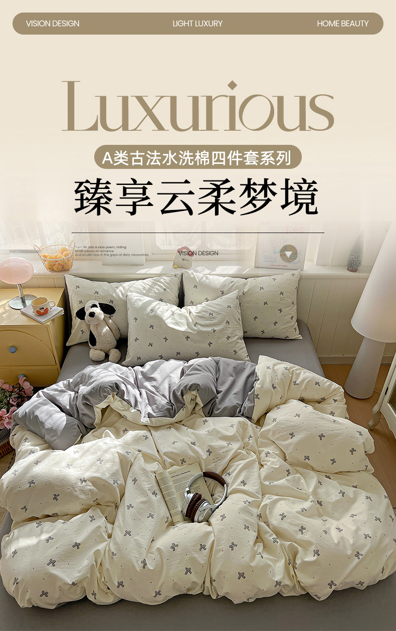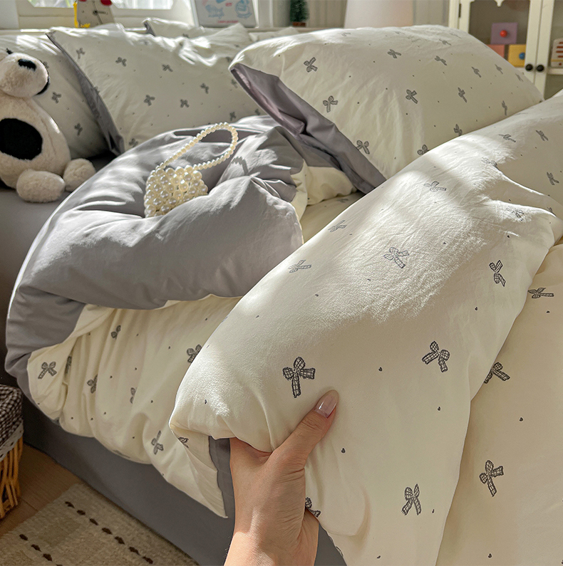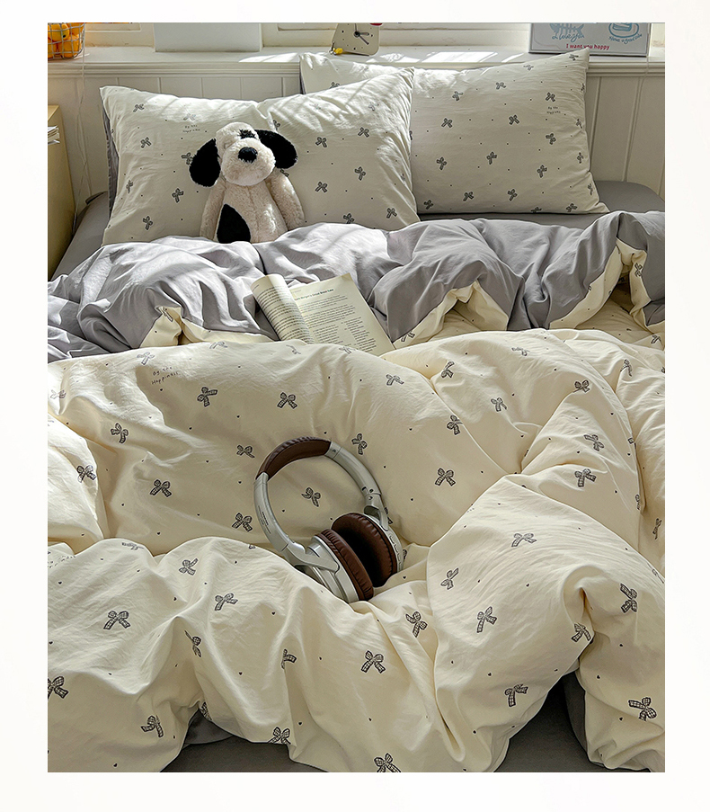 当前位置: 91家纺网 > 商品网购 > 床品套件 > 四件套 > 水洗棉四件套 > 凯洛奇 2026新款A类仿棉四件套古法水洗棉小清新印花四件套单被套系列 黑色蝴蝶结