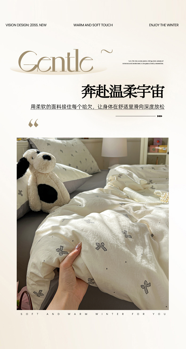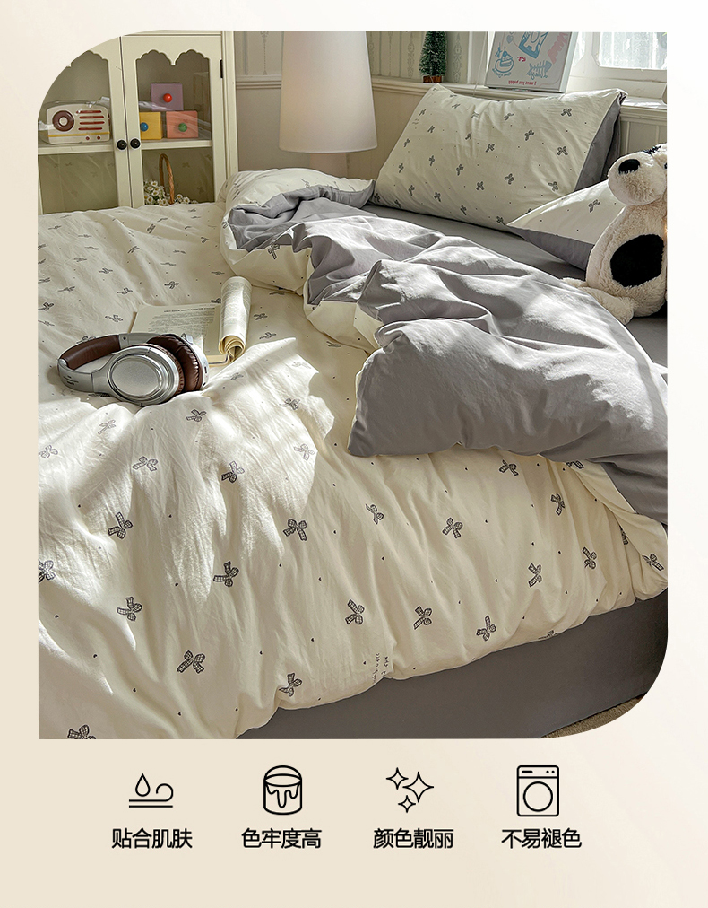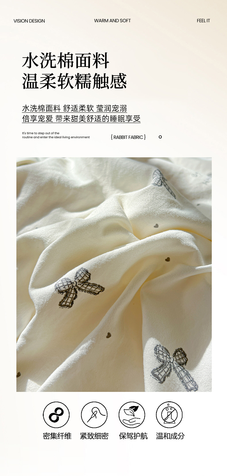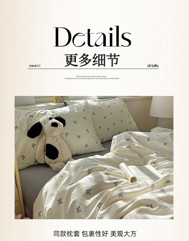 当前位置: 91家纺网 > 商品网购 > 床品套件 > 四件套 > 水洗棉四件套 > 凯洛奇 2026新款A类仿棉四件套古法水洗棉小清新印花四件套单被套系列 黑色蝴蝶结