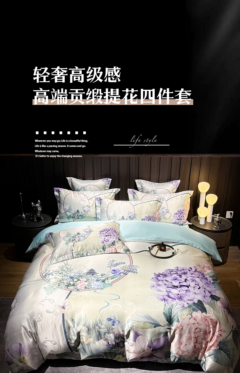 (总)七夜居 2025新款欧式轻奢高精密色织贡缎提花四件套礼盒装,一曲,繁茂,飞绒落羽,幻境,莫离,踏山河,波尔塔,长相思,莱肯,摩登都市,海蓝之心,锦绣年华,牡丹盛世,牡丹之歌,一叶知秋