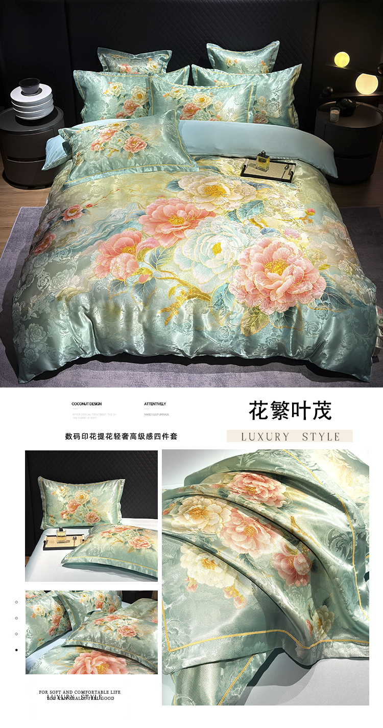 (总)七夜居 2025新款直播爆款欧式大阪轻奢贡缎提花加数码印花磨毛四件套,绣球花语,繁花蝶舞,国色天香,凯撒圣殿-帝王蓝,凯撒圣殿-象牙金,梦幻波尔多-粉,梦幻波尔多-绿,牡丹亭-芙蓉玉,牡丹亭-霜灰,清雅入梦