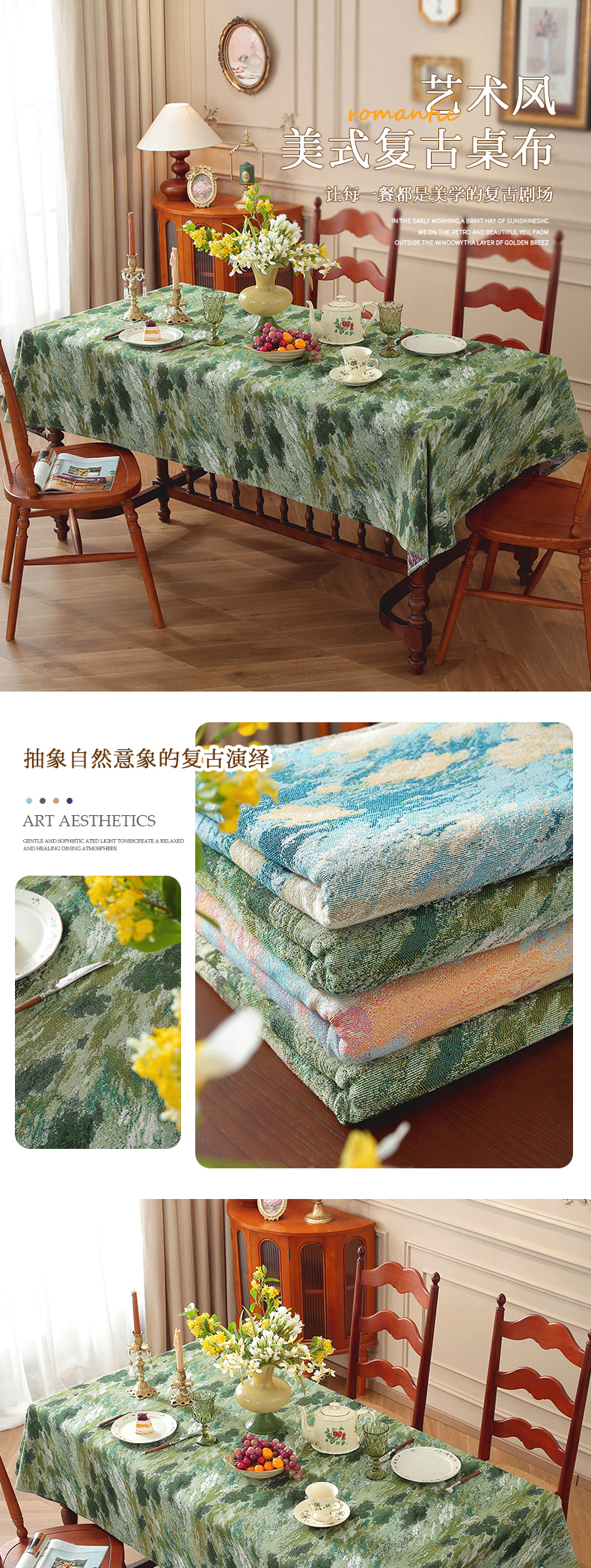 (总)南通大梧纺织 2024新款美式风情艺术派复古桌布-蒲公英,蒲公英