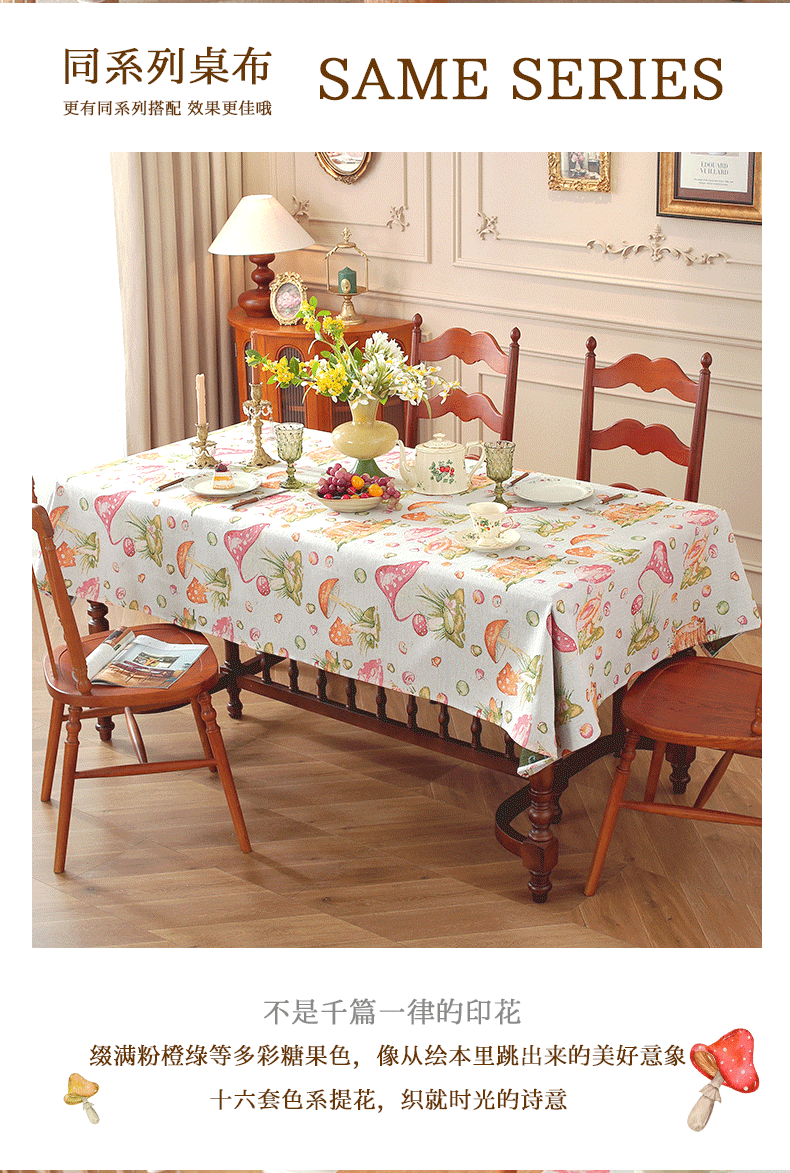(总)南通大梧纺织 2025新款复古森林秘境黑蘑菇园桌布,黑蘑菇园 140*140cm,黑蘑菇园 100*160cm,黑蘑菇园 140*180cm,黑蘑菇园 140*200cm,黑蘑菇园 140*220cm,黑蘑菇园 140*260cm