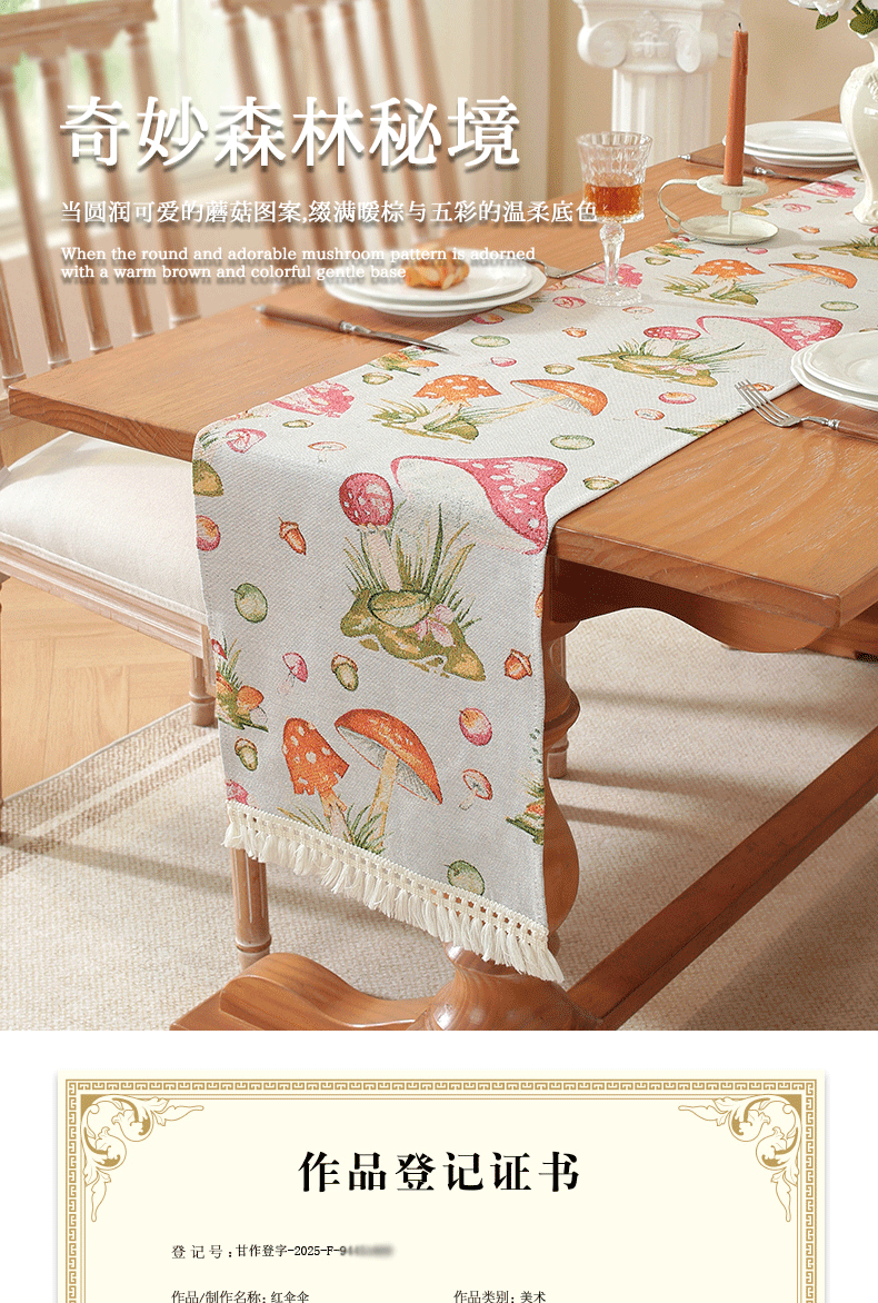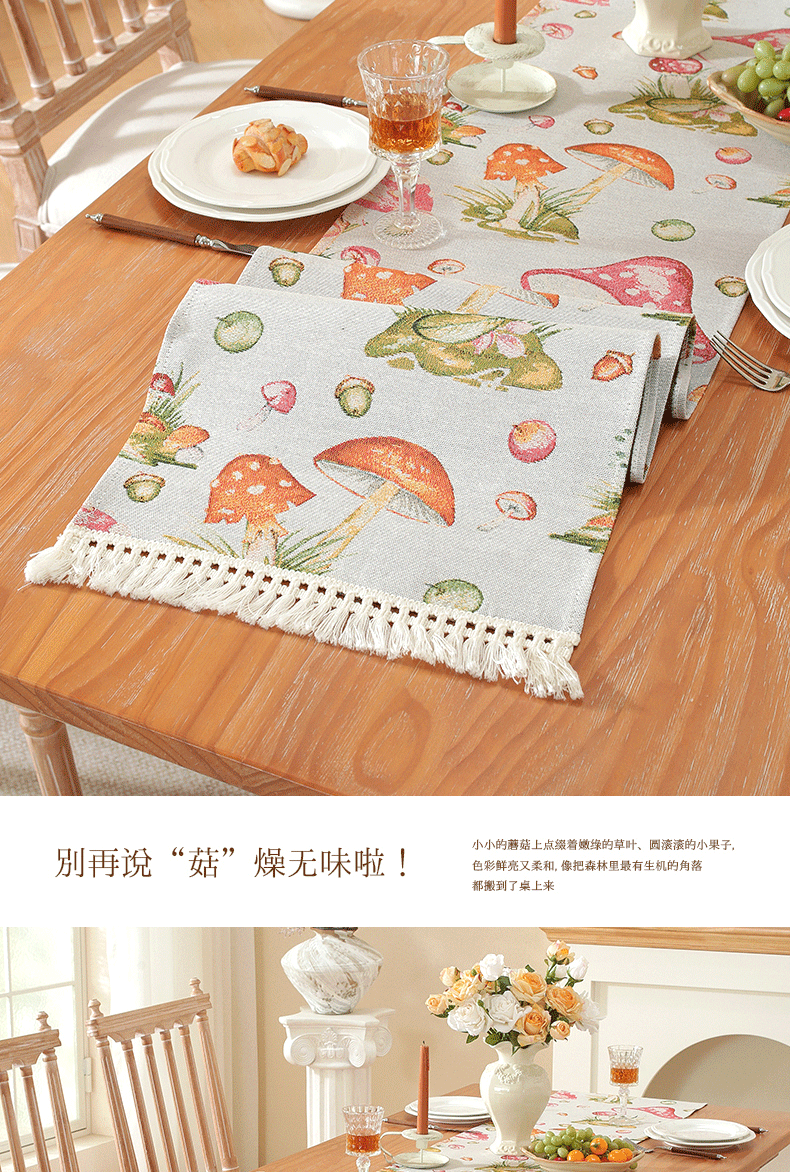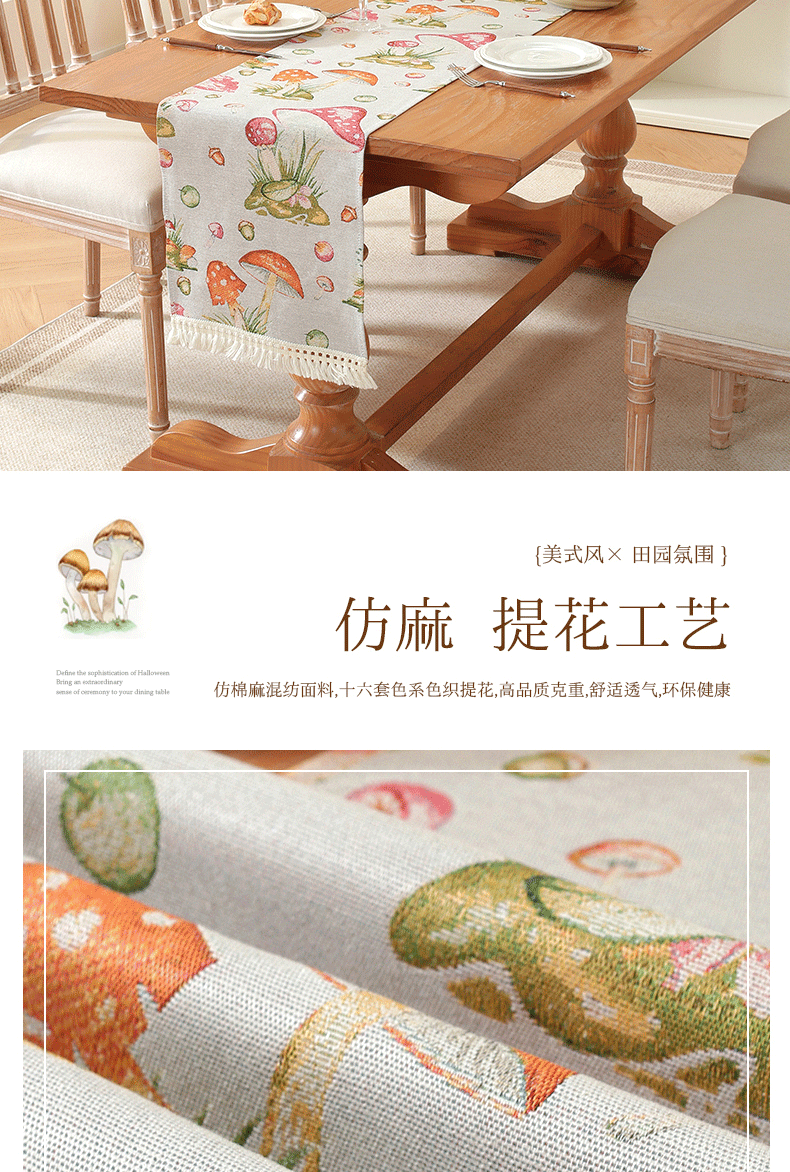 (总)南通大梧纺织 2025新款复古森林秘境黑蘑菇园桌旗,黑蘑菇园 35*120cm(含吊穗),黑蘑菇园 35*160cm(含吊穗),黑蘑菇园 35*180cm(含吊穗),黑蘑菇园 35*210cm(含吊穗),黑蘑菇园 35*240cm(含吊穗),黑蘑菇园 35*270cm(含吊穗),黑蘑菇园 35*300cm(含吊穗),黑蘑菇园 35*350cm(含吊穗)