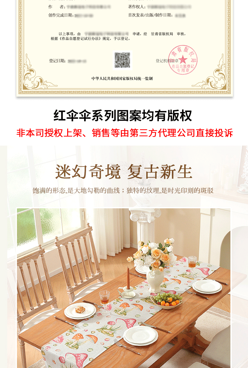 (总)南通大梧纺织 2025新款复古森林秘境红伞伞桌旗