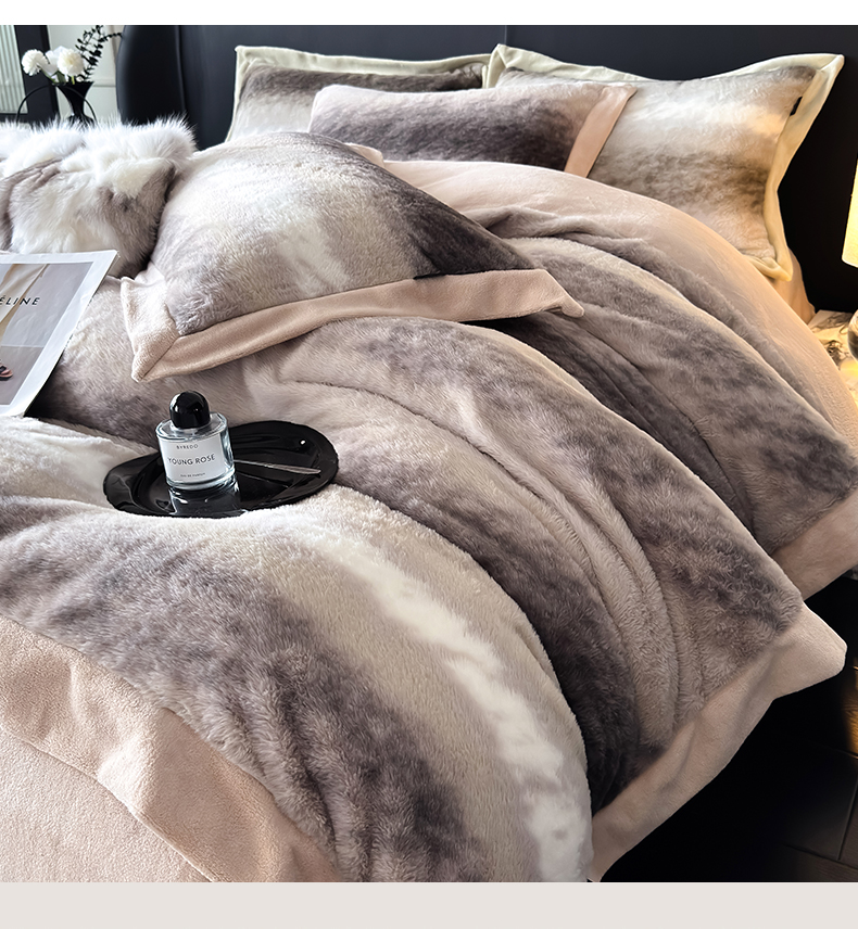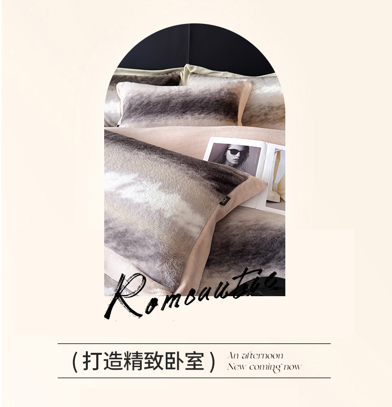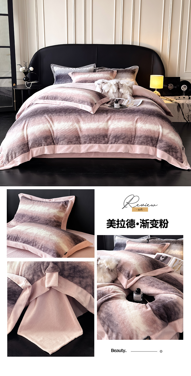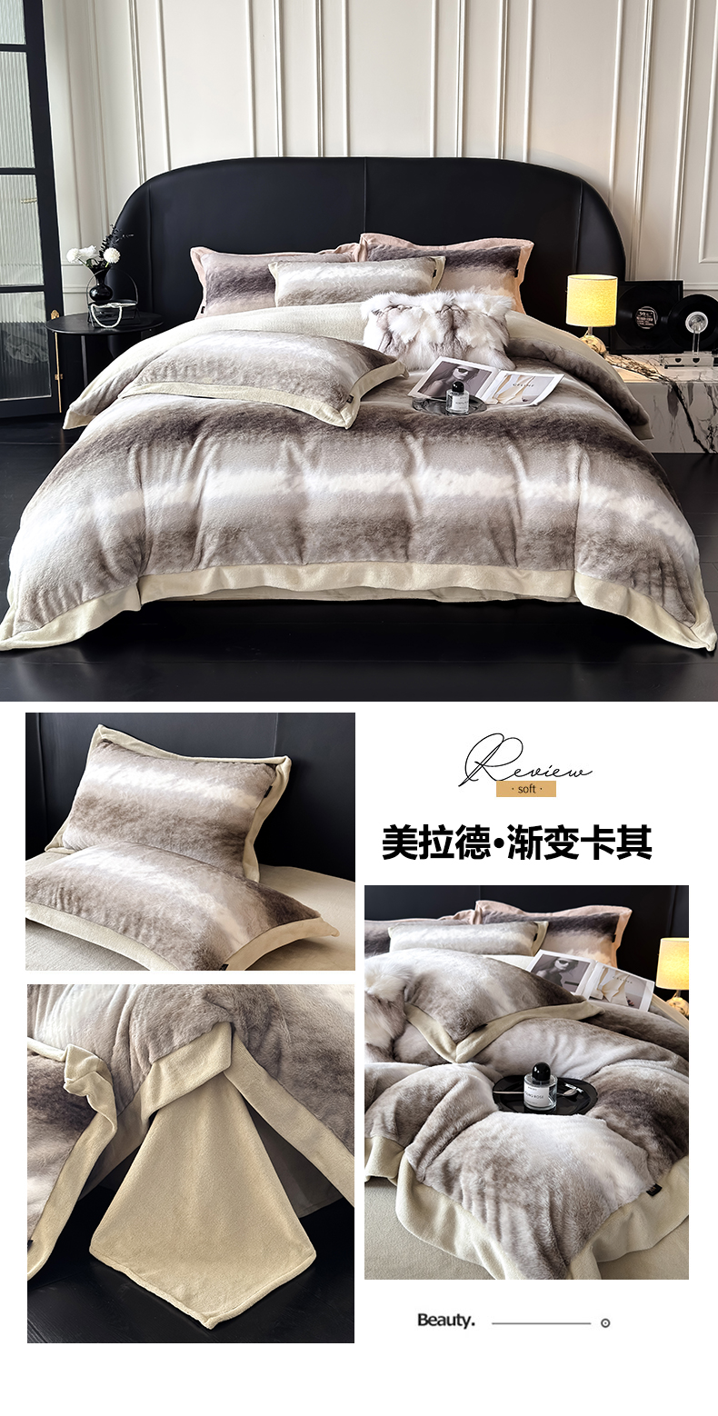 (总)水云缦 2025新款美拉德系列兔毛拼角四件套,美拉德-渐变灰,美拉德-渐变粉,美拉德-渐变咖,美拉德-渐变卡其,美拉德-渐变蓝
