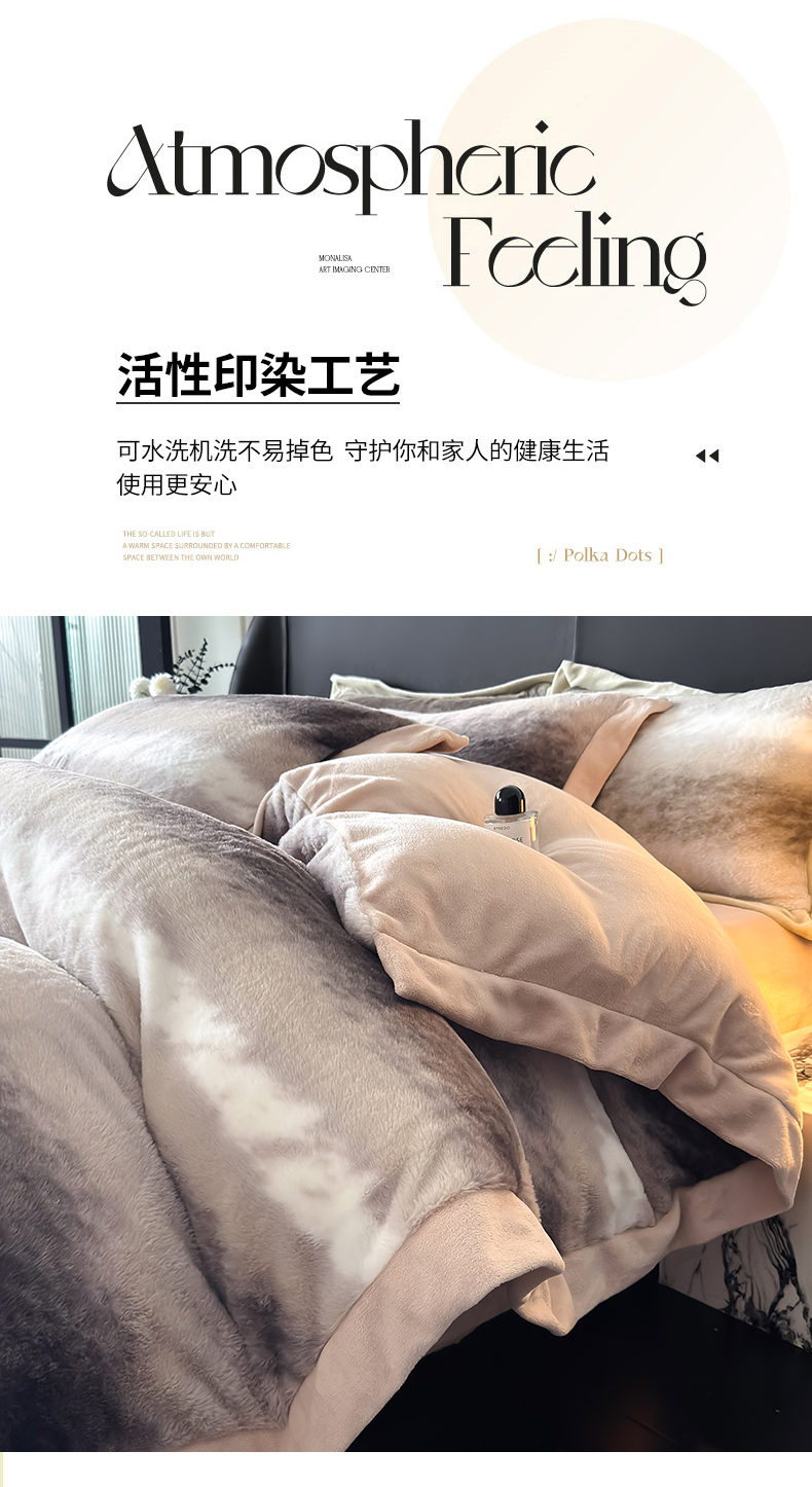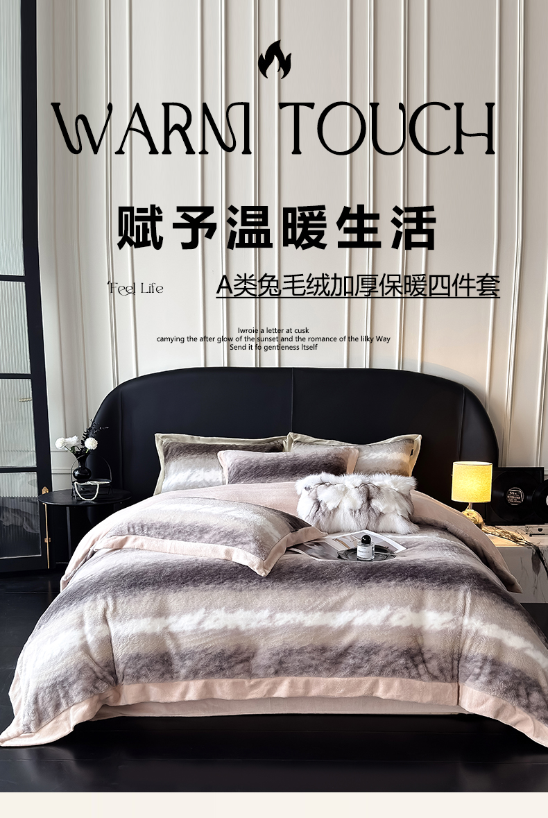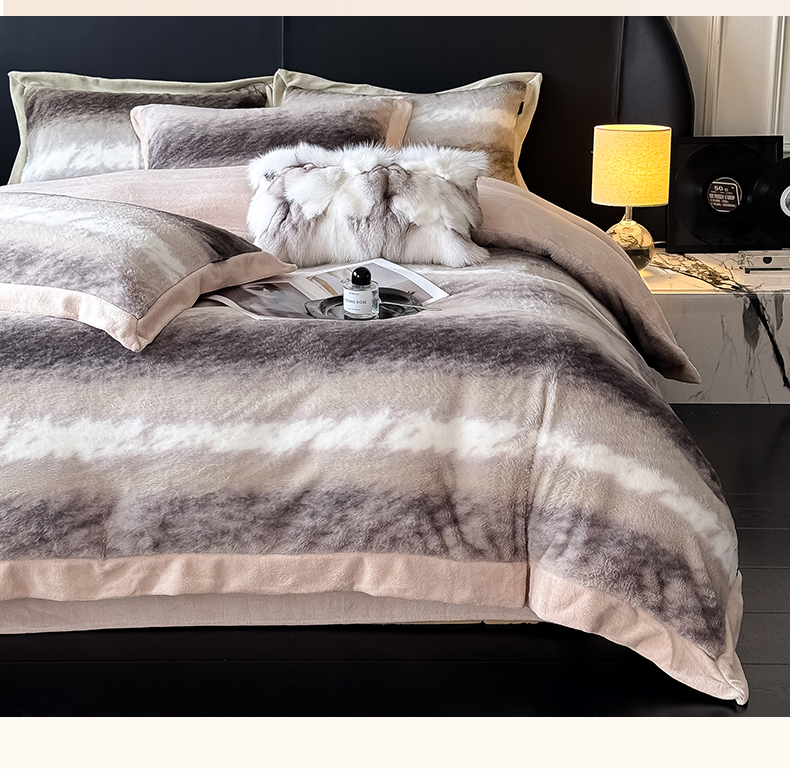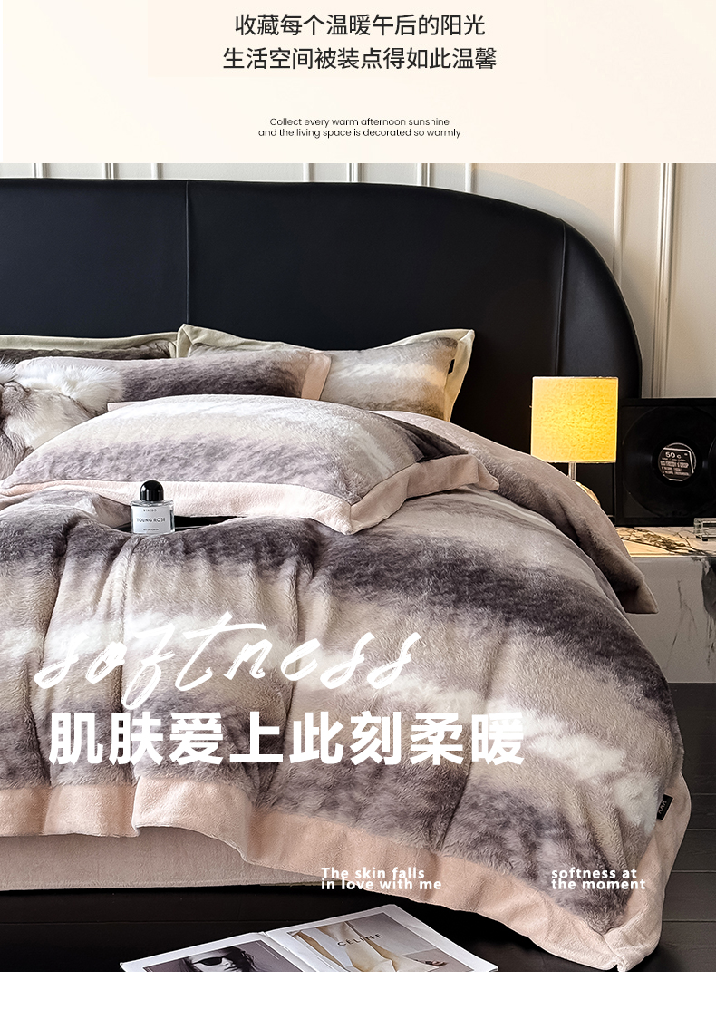(总)水云缦 2025新款美拉德系列兔毛拼角四件套,美拉德-渐变灰,美拉德-渐变粉,美拉德-渐变咖,美拉德-渐变卡其,美拉德-渐变蓝