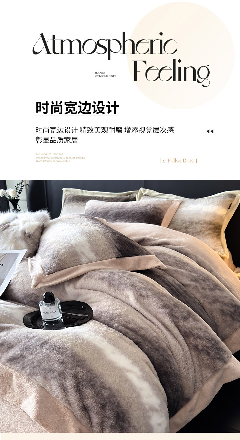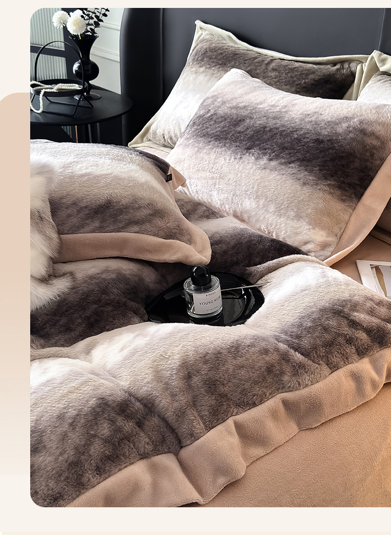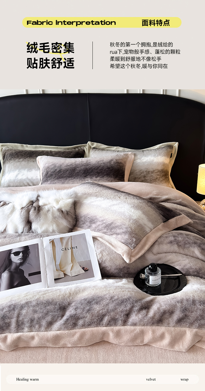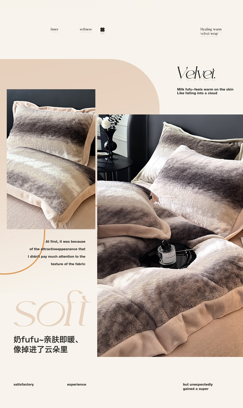 商品名称:水云缦 2025新款美拉德系列兔毛拼角四件套系列 美拉德-渐变咖