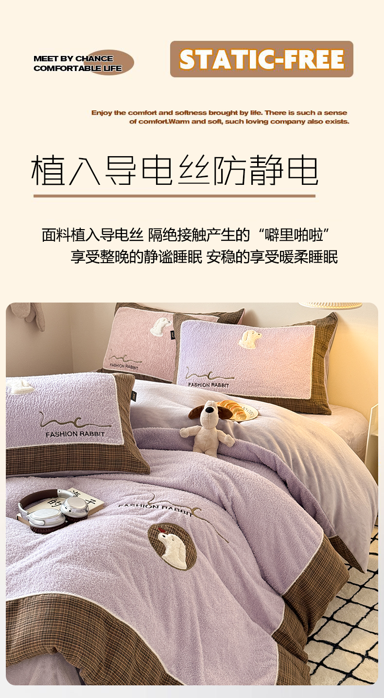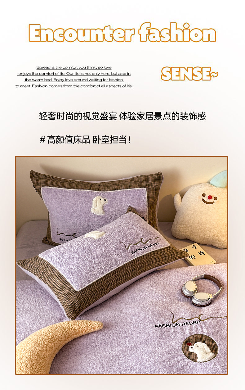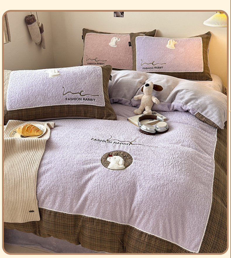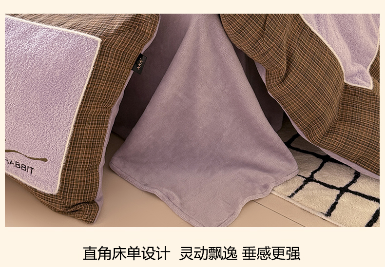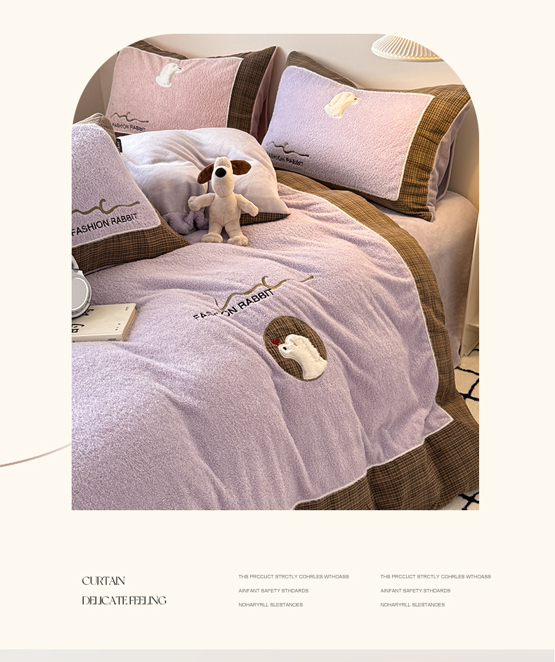 水云缦 2025新款米粒绒全棉双层纱四件套 米粒绒-香芋紫