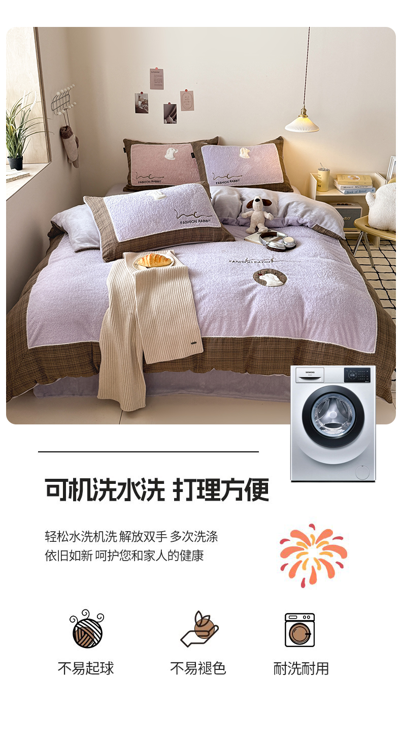 商品名称:水云缦 2025新款米粒绒全棉双层纱四件套 米粒绒-香芋紫