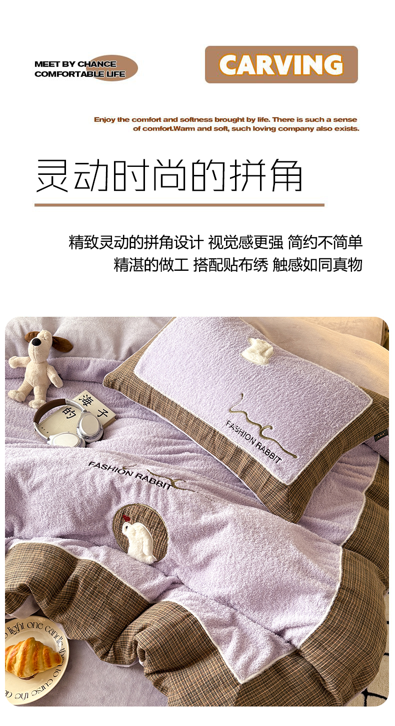 (总)水云缦 2025新款美拉德系列兔毛拼角四件套,美拉德-渐变灰,美拉德-渐变粉,美拉德-渐变咖,美拉德-渐变卡其,美拉德-渐变蓝