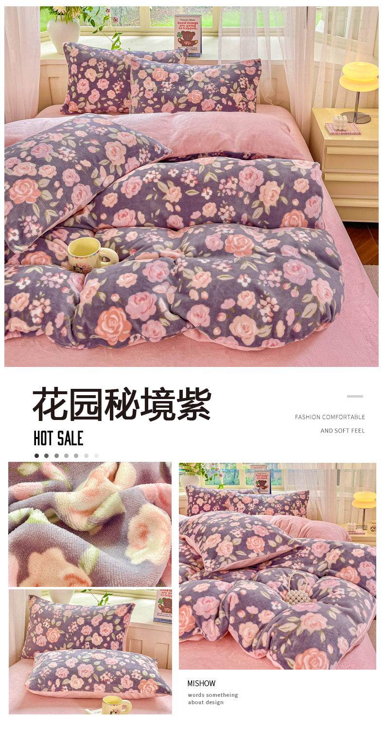 商品名称:斯卡诺家纺 2026新款小清新牛奶绒床盖四件套冬季加厚床盖四件套 织梦空间
