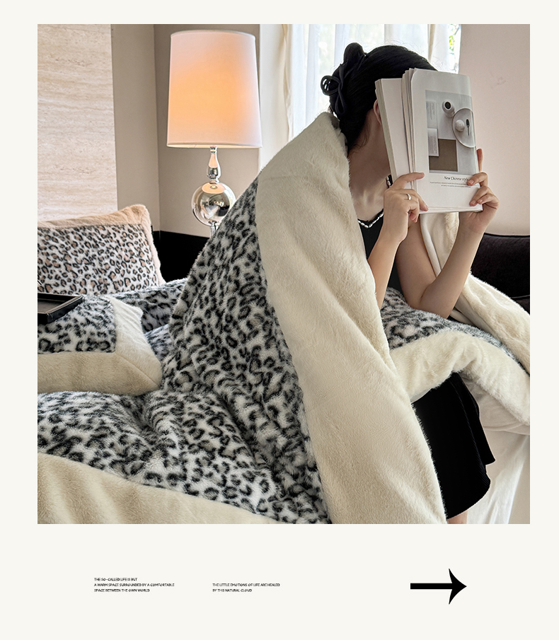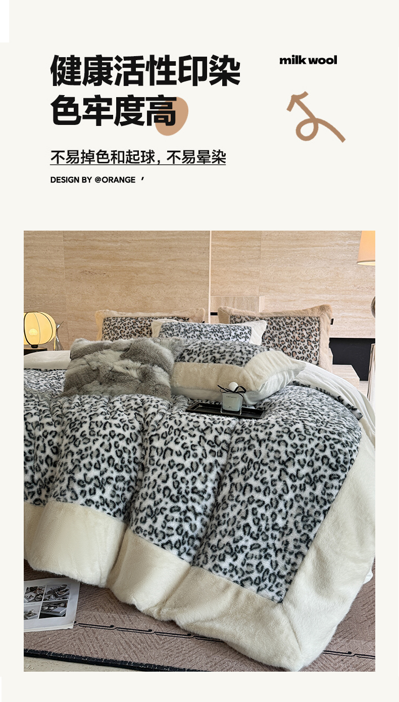 水云缦 2025新款水貂绒豹纹四件套 豹纹-雪豹