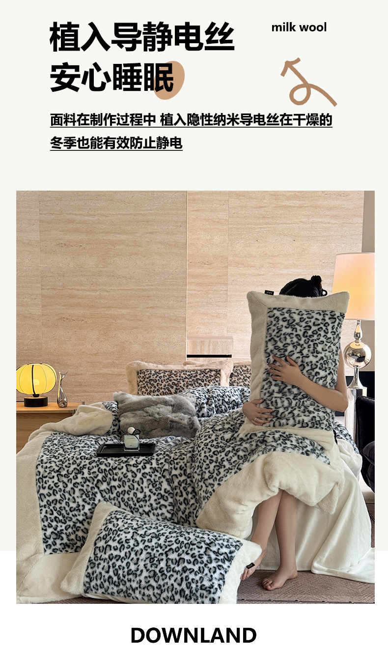 商品名称:水云缦 2025新款水貂绒豹纹四件套 豹纹-雪豹