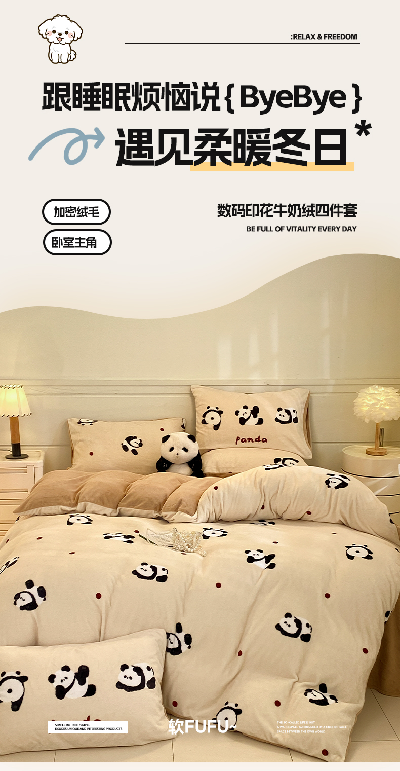 当前位置: 91家纺网 > 商品网购 > 床品套件 > 四件套 > 牛奶绒四件套 > 如一 2025新款高克重大版数码印花牛奶绒四件套 熊猫咖