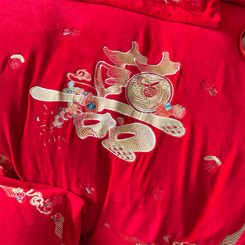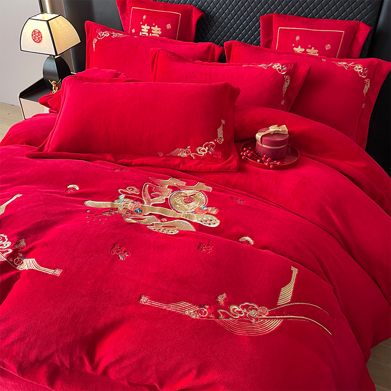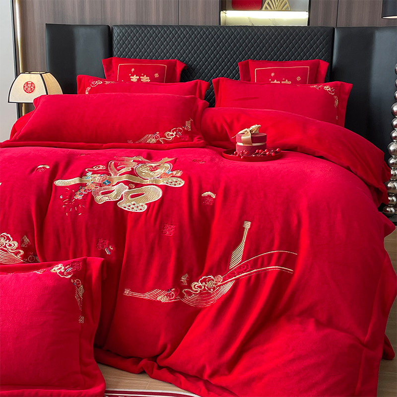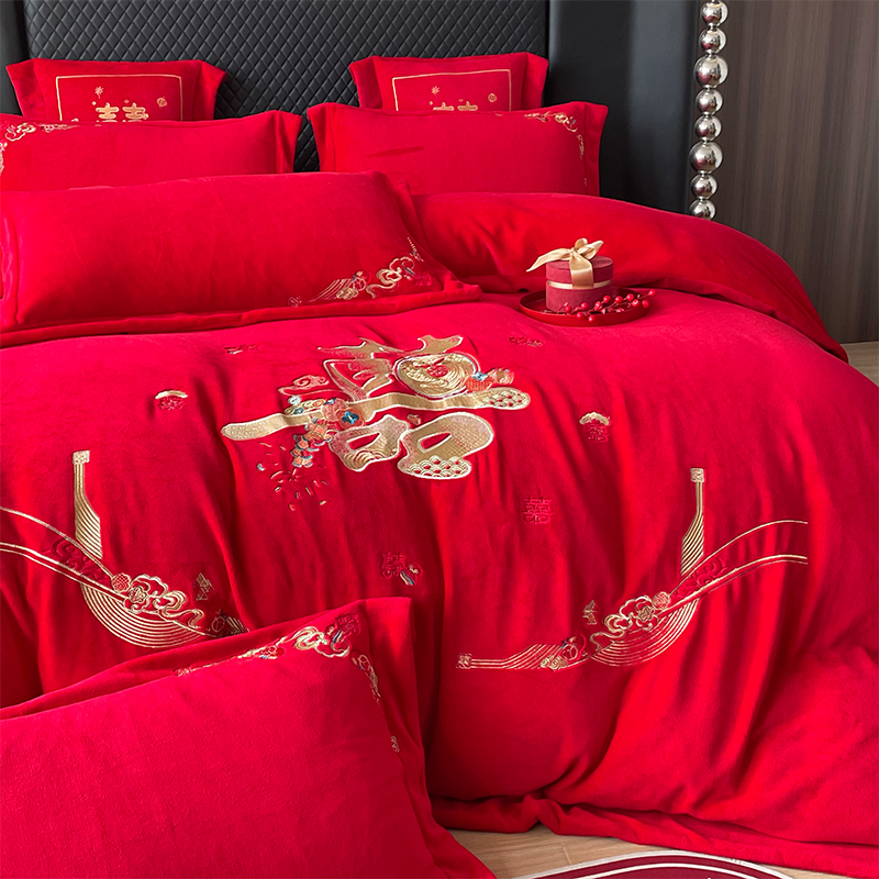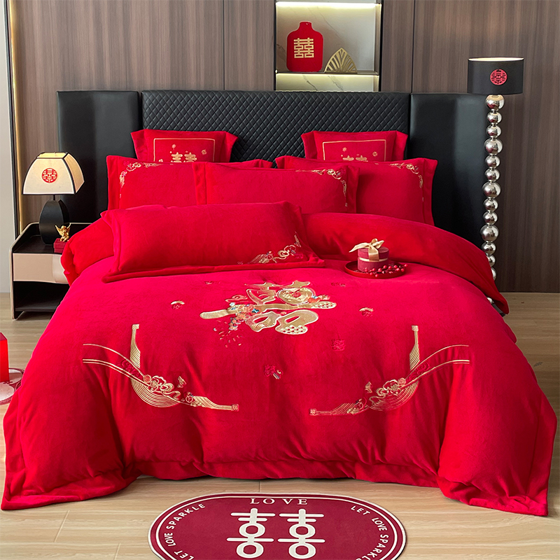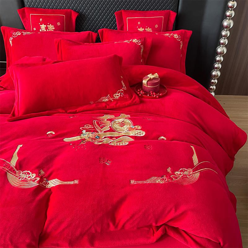 当前位置: 91家纺网 > 商品网购 > 床品套件 > 四件套 > 婚庆四件套 > 羽梦家纺 2025新款全工艺消光牛奶绒绣花婚庆四件套(控价最低368元) 喜结连理