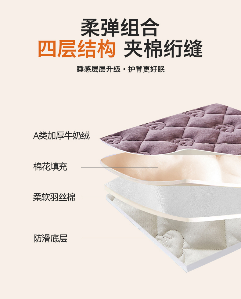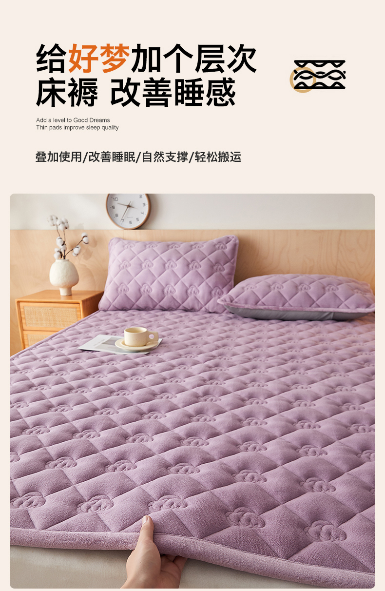 商品名称:布卢姆床垫 2025新款牛奶绵绒棉花床褥床护垫-灵蕴 灵蕴-香芋紫